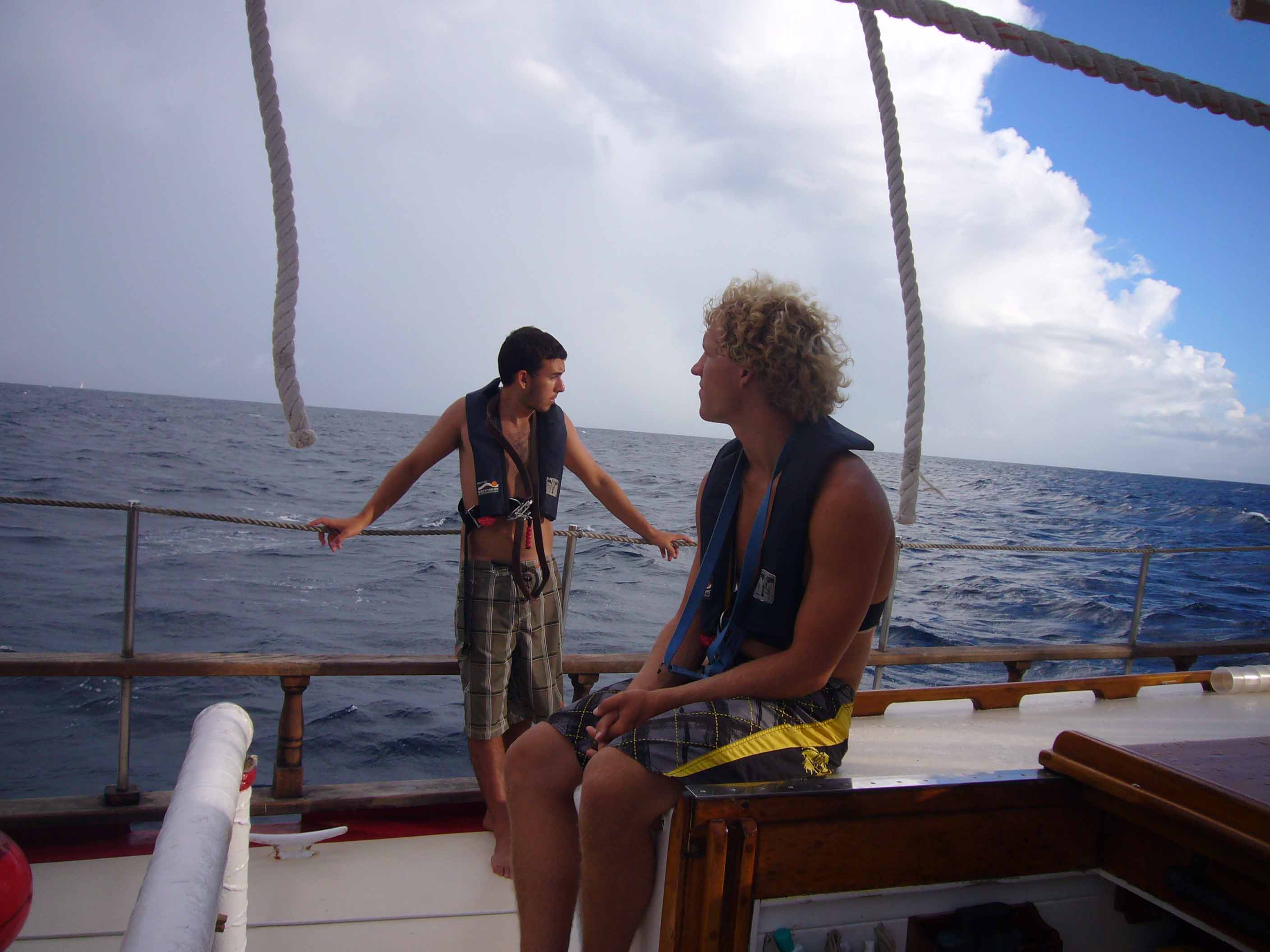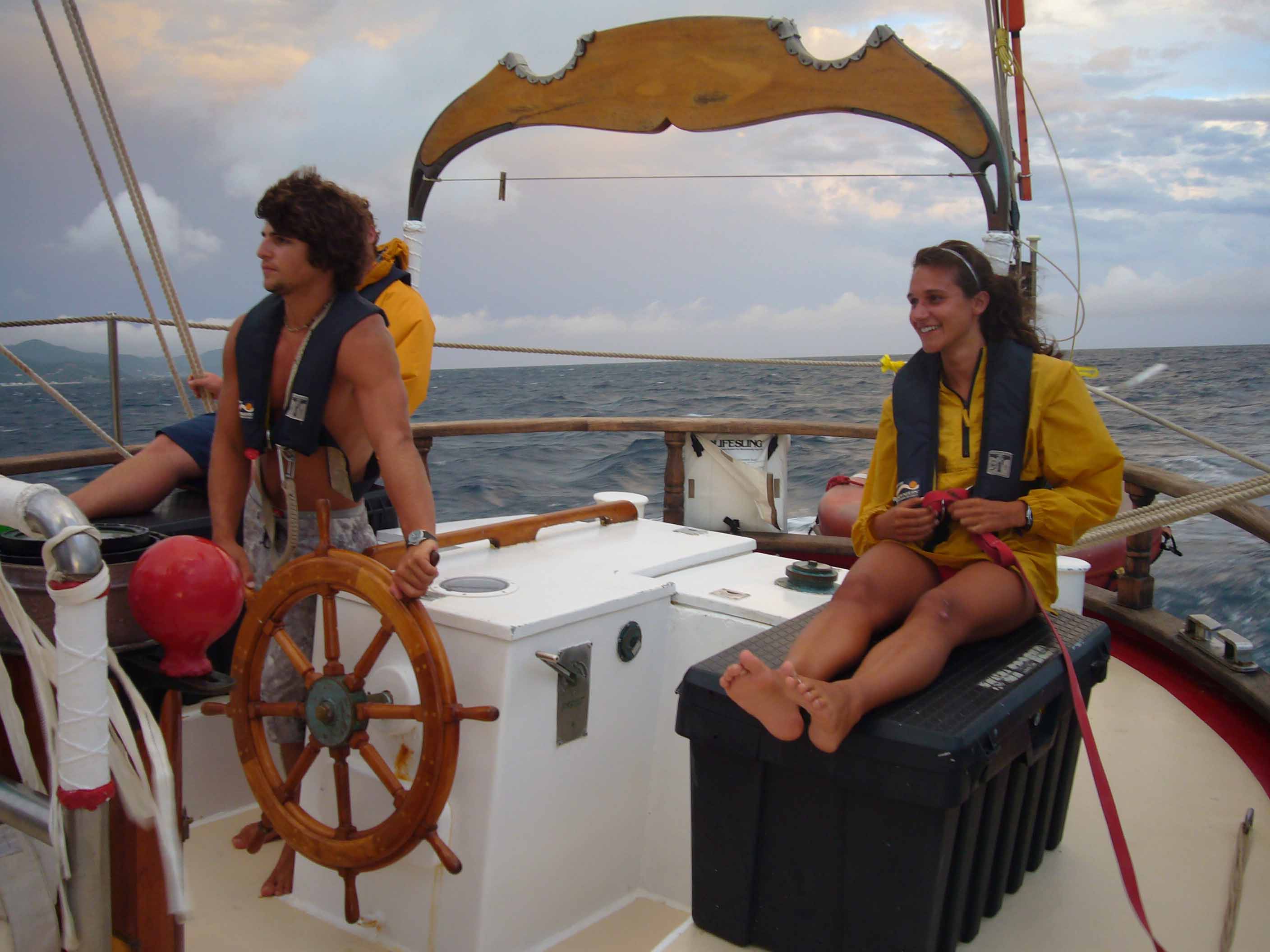 This morning, we woke up and ate Beaker’s Real Oatmeal’, which was way better than our usual packets of oatmeal. Everyone turned in their telltale articles before our morning Oceanography class, and we had another Coastal Navigation class, AKA The Dan and Graham Show’. We had dinner underway, which is always fun with the wind and waves against us. It was a night passage, so we had our watch teams take turns on deck all night. Overall, the day was fun, and we’re getting used to this lifestyle.