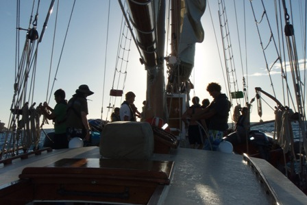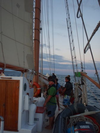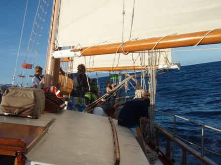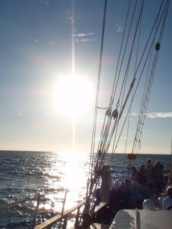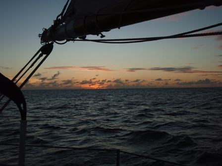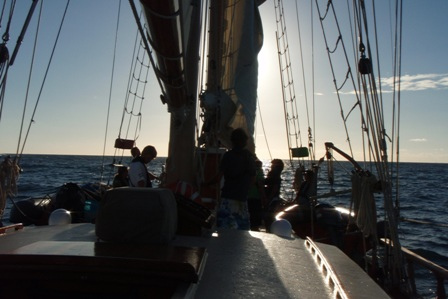 We woke up at six to the smell of chocolate chip and cranberry pancakes. After breakfast, we departed from English Harbour and set sail for Barbuda. Once all the sails were up, we split into our watch teams and sailed to the other side of Antigua to make our way to Barbuda. The second part of the sail was upwind and was pretty rough, but also extremely enjoyable because the conditions were perfect. We arrived at 17:30 and flaked the sails. For dinner, we had beef stroganoff and an excellent salad prepared by Jeff and Ben. After our Kum-ba-ya-style dinner, we watched Blue Planet: Open Ocean. Excited to be back on an anchor again with beautiful stars in the sky, we all went to bed early to get a good night’s rest before our beach adventures tomorrow morning. This is Max Shatzkamer reporting from Ocean Star, and it’s been another wonderful day!