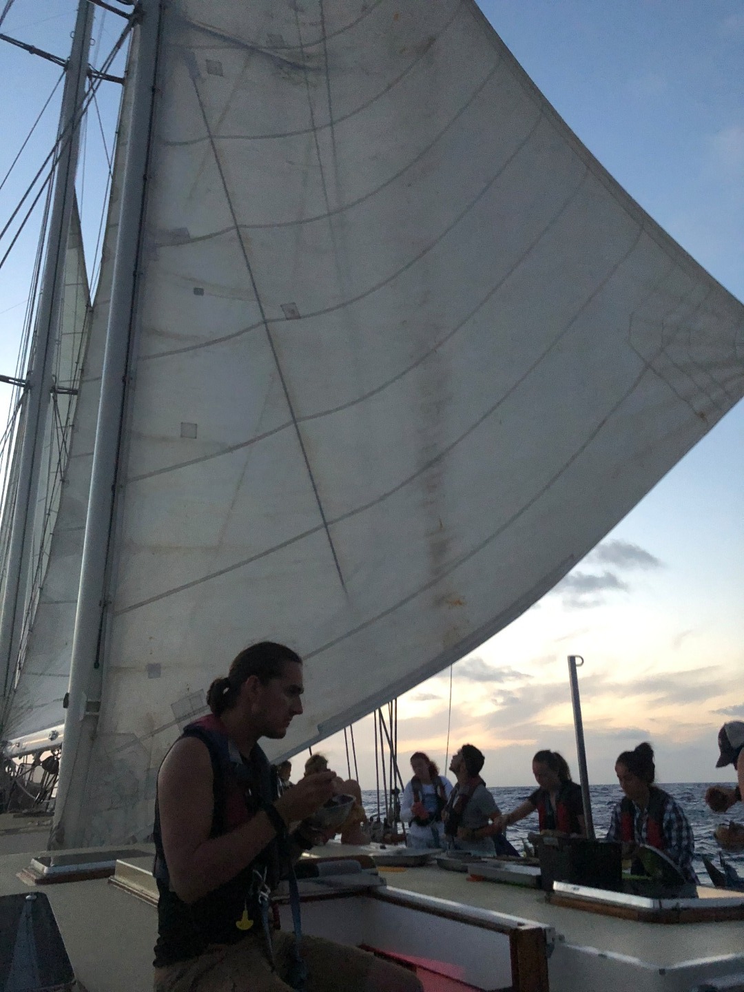 In honor of another day at sea, I selected a song that I felt encapsulated the very wavy conditions we had today. Needless to say we all twisted and shouted a fair amount today thanks to the continuous rolling of the boat in the waves. Today, in addition to the normal schedule of eating, sleeping, standing watch and going to class, we also had a fire drill and set our watches back an hour.