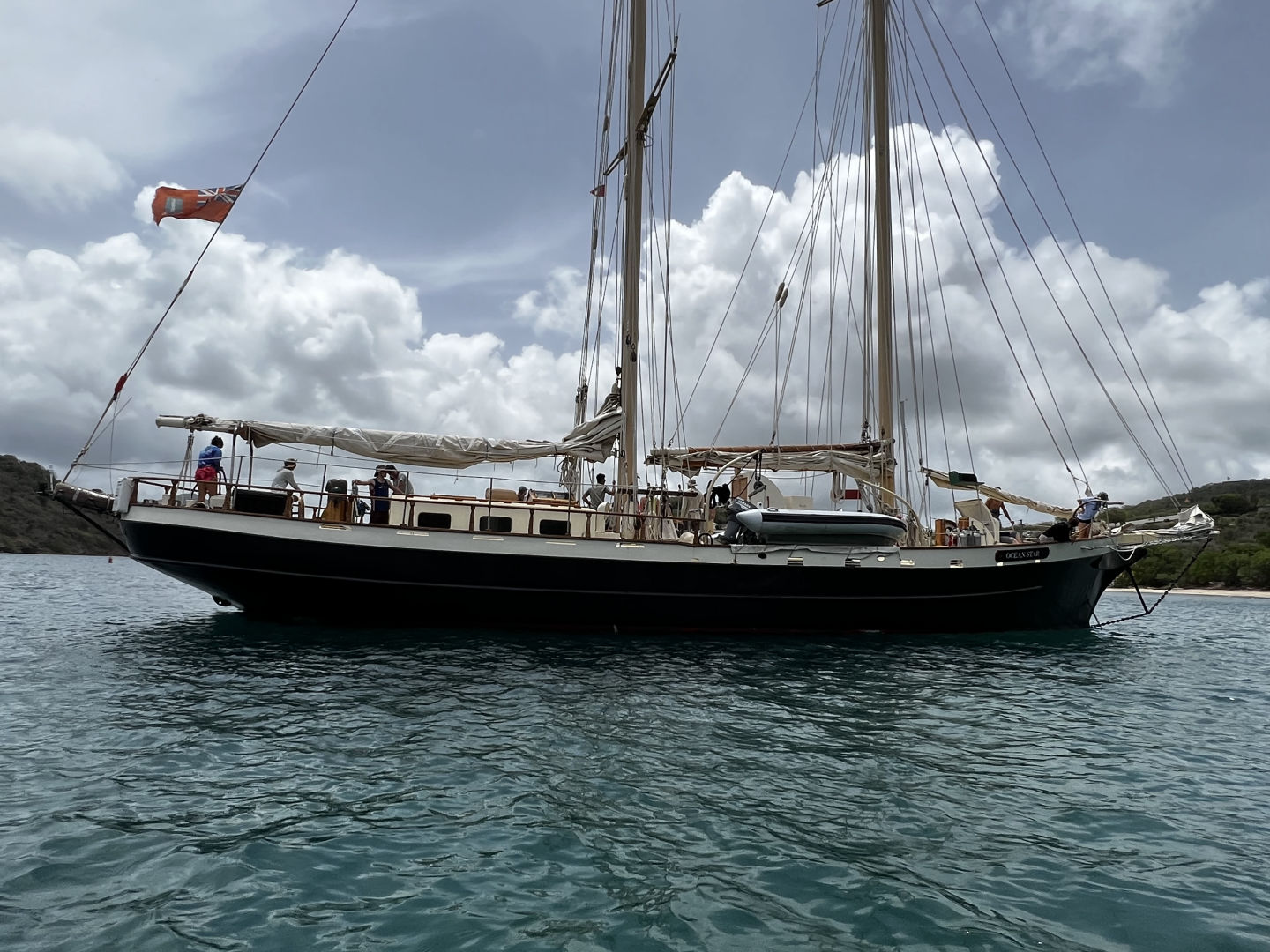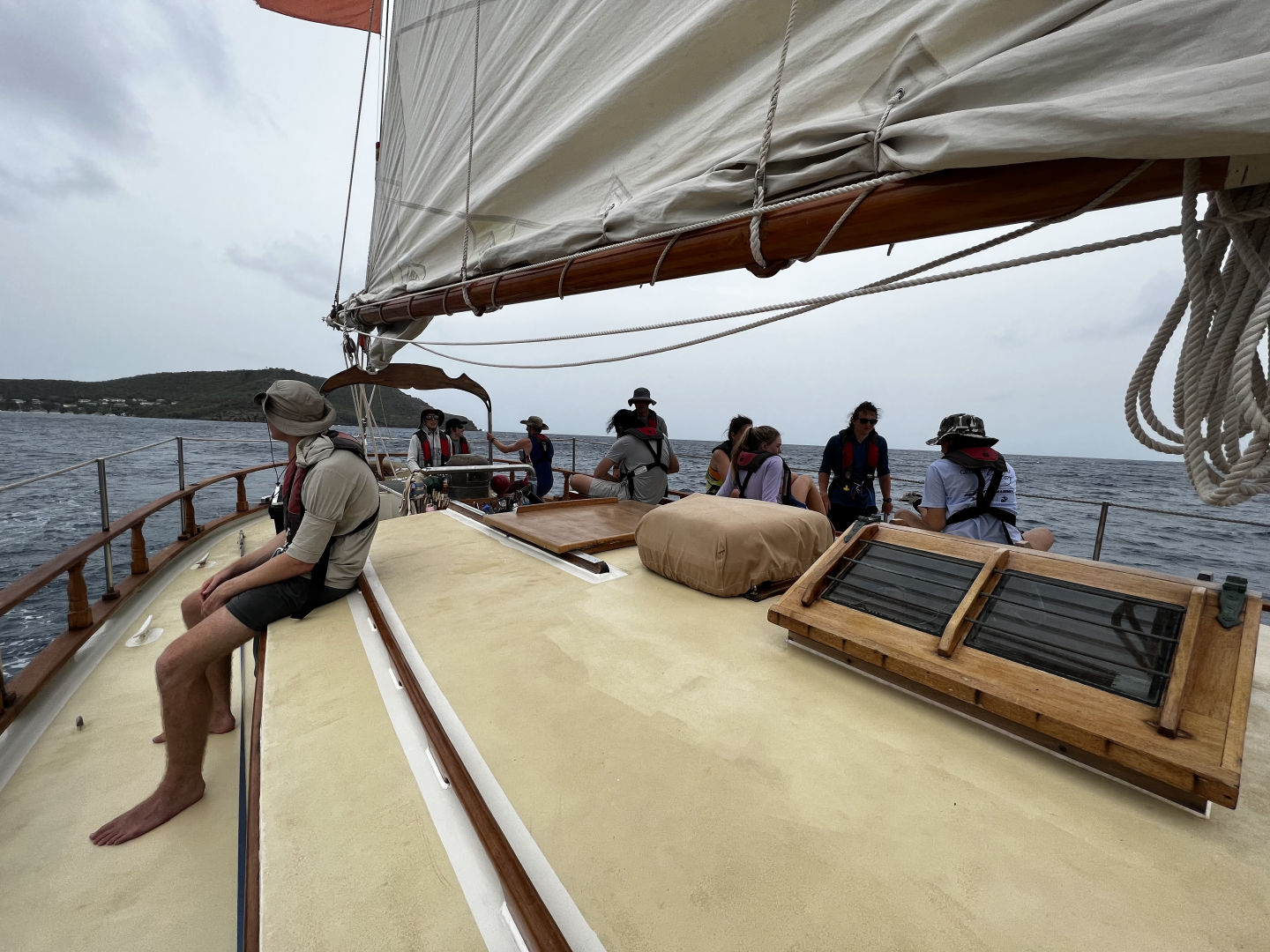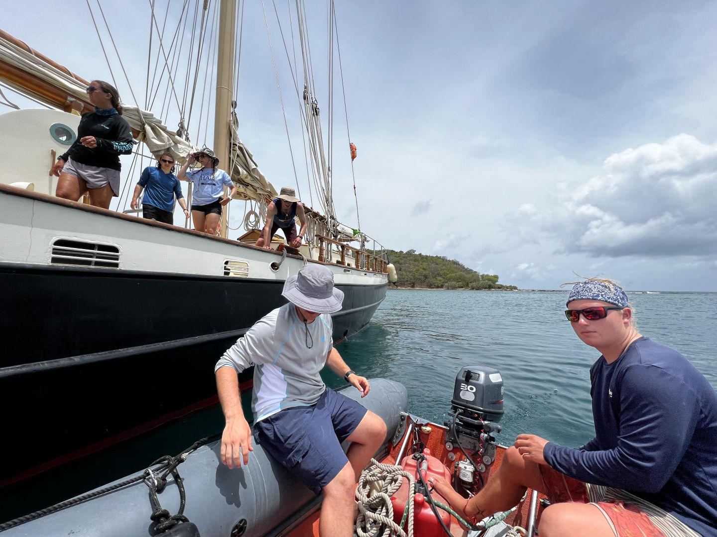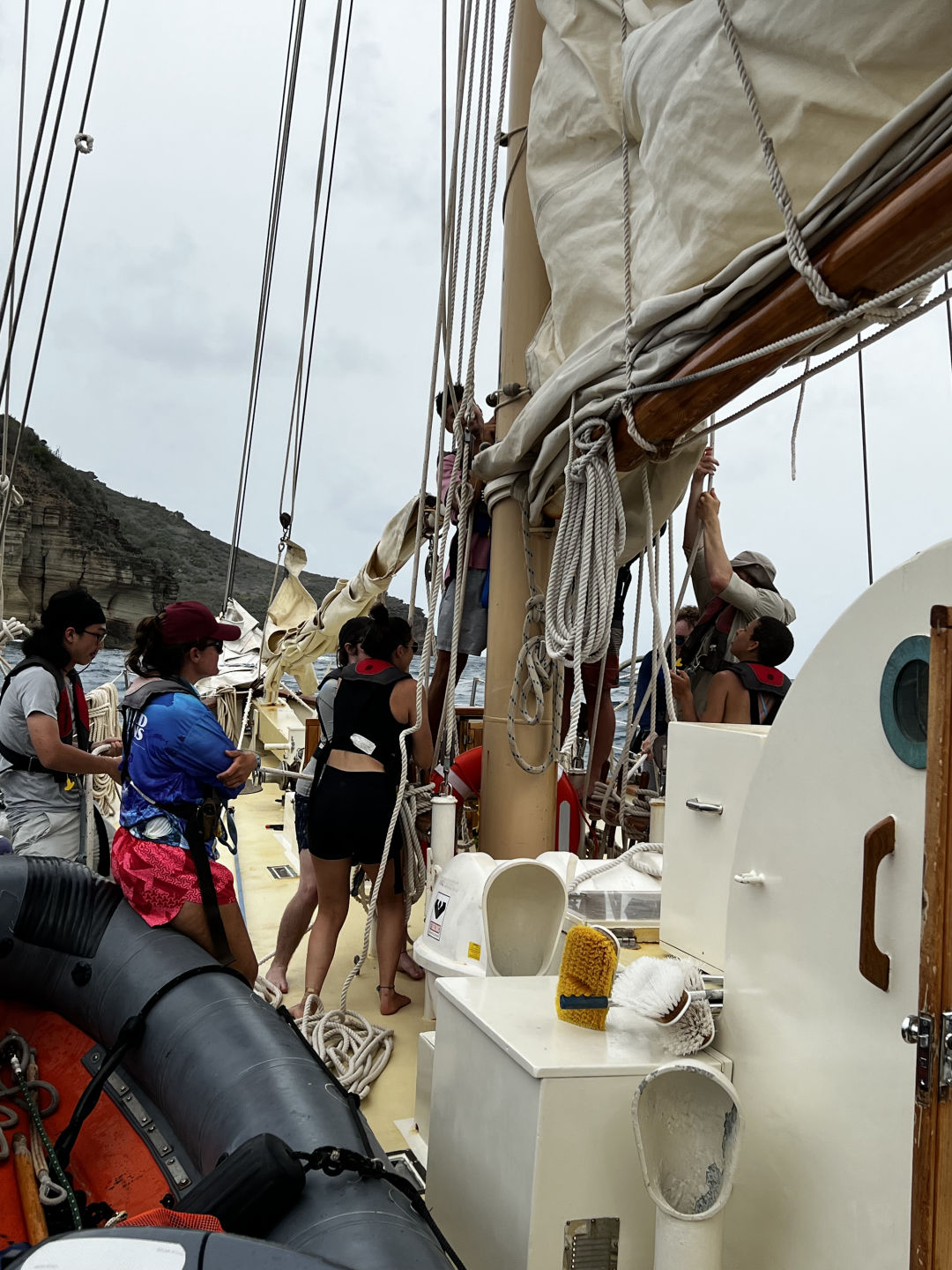 Once we were out of the bay, we started fully putting up the sails and successfully completed a very new and fun task that many of us hadn’t done before. We are currently on our passage to Nevis, sailing at a nice speed of 10.6 knots without too much lateral shift. It was a very eventful and fun day spent with all of the crew. The leader of the crew has been a huge help to us since the beginning and I am thankful we have so many good teachers and students/friends on this trip. I’m excited to see how the passage goes tonight and am excited to get to the new island tomorrow as well. I enjoyed being the skipper today as you are basically the boat mom for the day. You wake up everyone, help people out with their jobs, take pictures and make sure everyone is having a great time. I also can’t believe I have already been on this trip for a week, as it feels like it’s only been a few days. Everyone is great and fun to be around. Overall, today was super busy, eventful, and fun, and I can’t wait to see what other adventures are in store for our crew as we continue to sail across the Caribbean.