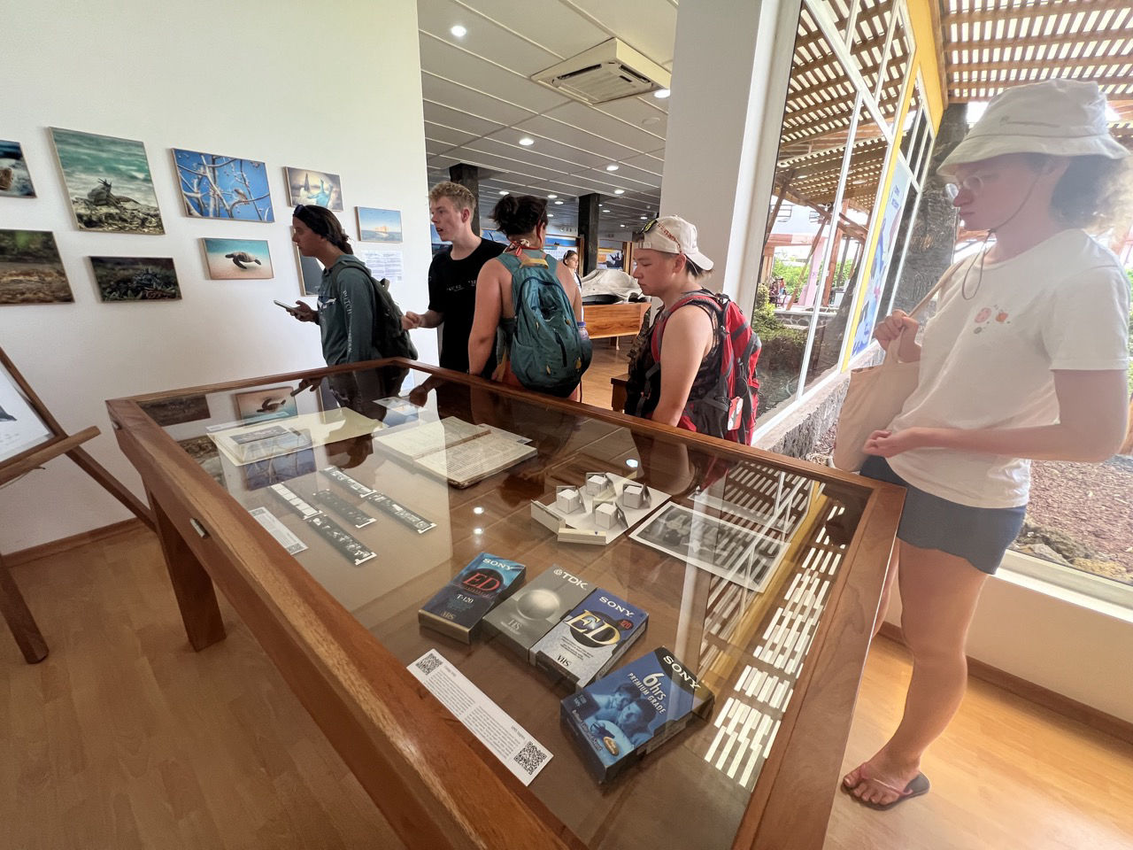 We woke up this morning in the Galapagos for the last time on this Journey, knowing that the time to say goodbye to solid ground for around three full weeks was coming. After breakfast, we got Passage prep done as quickly as possible and then split up like previous days for various activities. Some people visited the Darwin research center (Daphne is going to give you more details about this below!), others went diving (Morana and Carla were lucky enough to swim right next to a giant Manta Ray), and people with no pre-scheduled activities went ashore and did what they wanted out of their free time. Miles and Fargo, among others, went surfing in Tortuga Bay. Like many of my crew mates, I chose to go to a laundry place right before passage and bought some last souvenirs in the lovely town of Puerto Ayora. We stopped one last time at Chocolapagos (so that I could buy a tonne of chocolate, which is not super smart when you live on a boat in the tropics when anything that can melt WILL melt) and, of course, at Darwin + Wolf (a clothing store only in the Galapagos that I think everyone on this boat bought something at) so that Ted could say goodbye with one more purchase (he now owns 3 Darwin + Wolf shirts, a hoodie, a journal, a buff, and some stickers). Then I had lunch ashore and was accompanied by Ted, Daphne, Nella, Cosmo, Saskia, and Owen for some delicious pulled pork burgers and bbq ribs. Before getting into the water-taxi at 4:30 p.m. to go back to Vela, we had a last look at that place where seeing Sharks, Rays, TurtlesandTurtoises, Iguanas, and Sea Lions is as common as walking past a Cat. Dinner was early, at 5:30, so that we could receive aboard the Ecuadorian border authorities to clear out of the country. Since they failed to find all the hard drugs we were hiding, we were free to go, and broke into watch teams for the beginning of that long passage routine, full of exams and projects. Some of us are a little bit nervous. Our patience is going to be tested, but everyone is still super excited to get to our next and final destination: Tahiti!!!