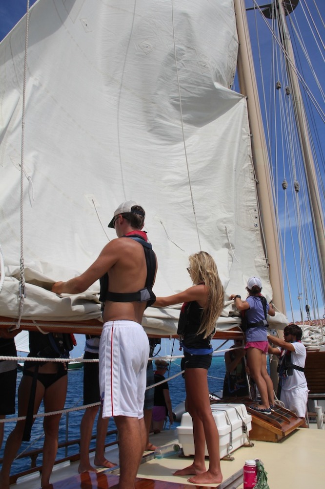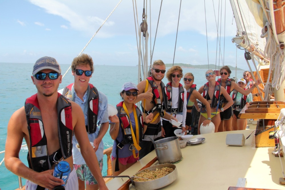 It was another great day on Ocean Star! We woke up early to start passage prep to leave Union and head to the Tobago Cays! After passage prep, we ate breakfast cooked by head chef Austin. After breakfast clean up, we had oceanography classes taught by Carolyn. We also got back our Marine Biology exams, which everyone did really well on! Once class was over, we pulled up the anchors and headed on our way. Although it was a short passage, we still managed to get 5 out of the six sails up, including the flying jib. We are starting to get a lot faster! We were even able to turn the engine off and just use the sails! When we arrived in the beautiful Tobago Cays, we dropped both of our anchors. Morgana gave her destination presentation, where she taught us all a lot about where we will be anchored for the next three nights. We were given the afternoon as an opportunity for study time or just hanging out. A lot of us went swimming and saw a few sea turtles, and I learned how to do a front flip off the boat! Later, we ate dinner and cleaned up! Now we are heading into our Student leadership class, where Kathleen will do her how-to presentation on how to salsa dance. We are all looking forward to it! That sums up day 26 on Ocean Star!