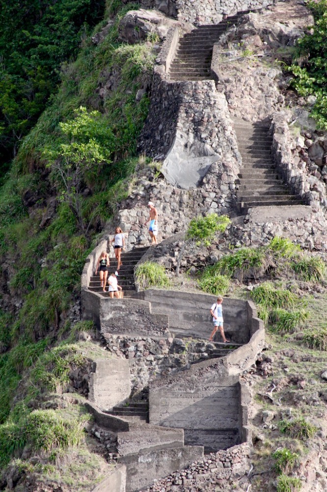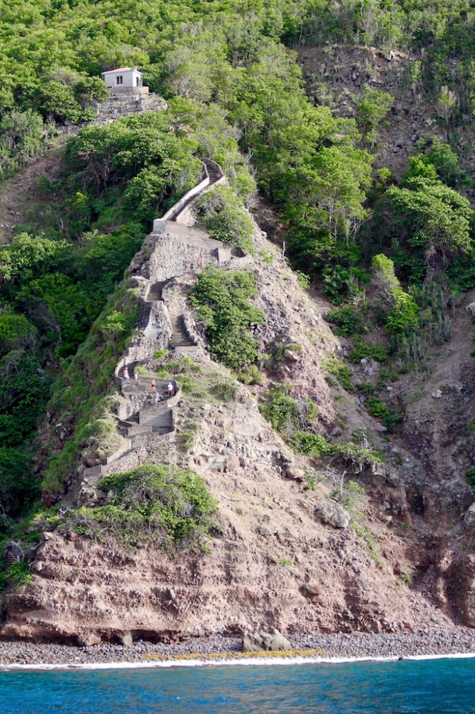 Today, we climbed the Ladder to The Bottom. It was a brutal, long, tiresome way up the side of the mountain. We struggled a bit, but it was so satisfying when we finally made it to the top of The Bottom! (For a bit of background, the Ladder is a long series of stairs up the side of the steep island of Saba – it used to be the only way to get up the island! The Bottom is the name of the town that is located, ironically, at the top of the Ladder). We walked to town, and then everyone either hitched a ride or hiked up to a town called Windward. Ale and I caught a ride with a local, which is the way that everyone gets around on Saba – there aren’t really taxis around, and there are lots of students on the island without cars due to the medical school, so there is a common practice of people just catching rides with whoever is driving the same direction. We traveled up the side of the mountain to the town of Windward with the wind in our hair and the best view of the island and sea. Every house and building on the island had a red roof; the houses here are super clean and cute, showing their Dutch roots. We met up with the rest of the crew in Windward and had lunch onshore. It was quite tasty. We explored the town, walked through the neighborhood, and even the local graveyard, then headed to JoBeans! JoBean is a glass-blowing shop where the artist blows glass into exquisite creations of rt.