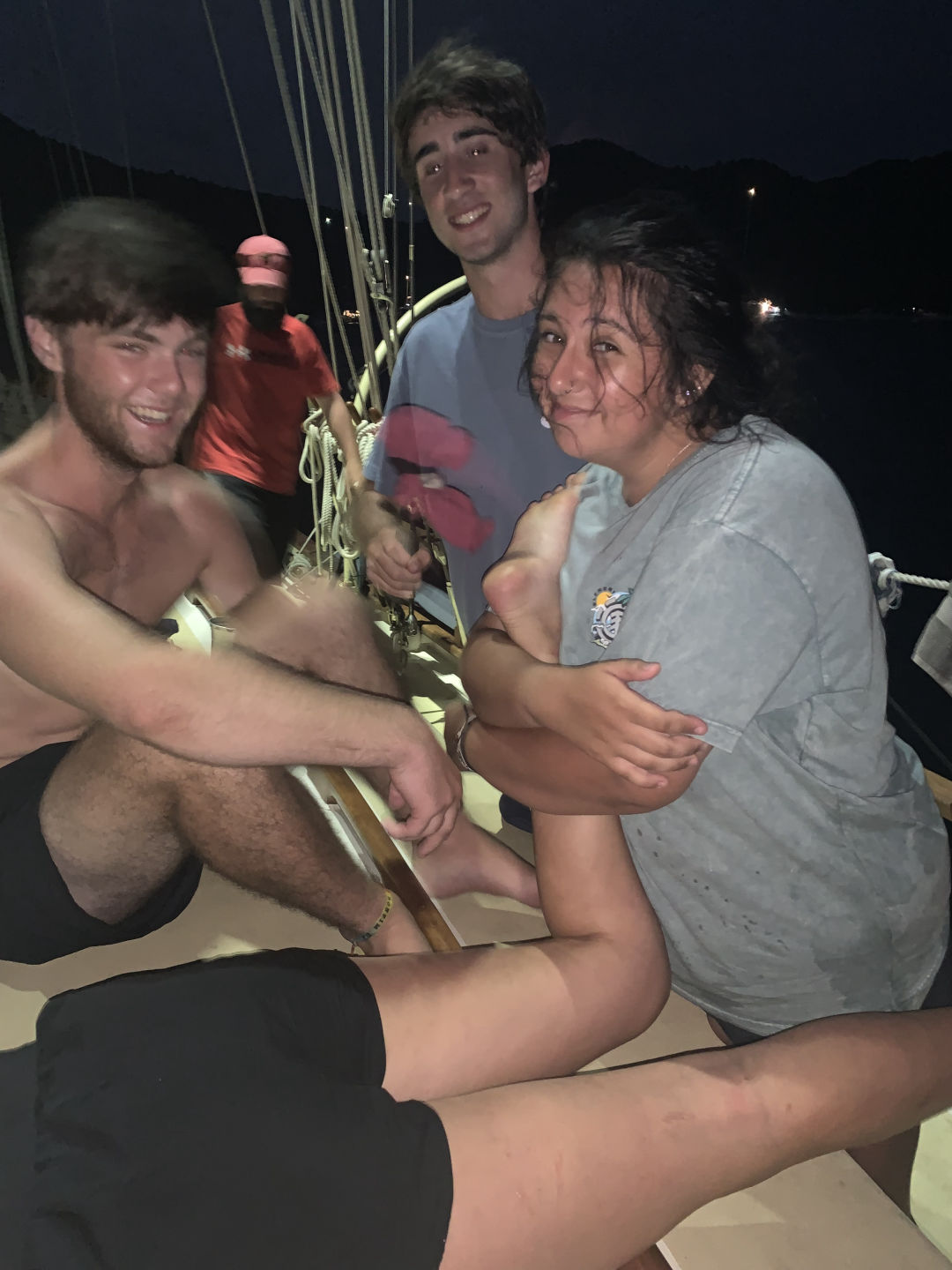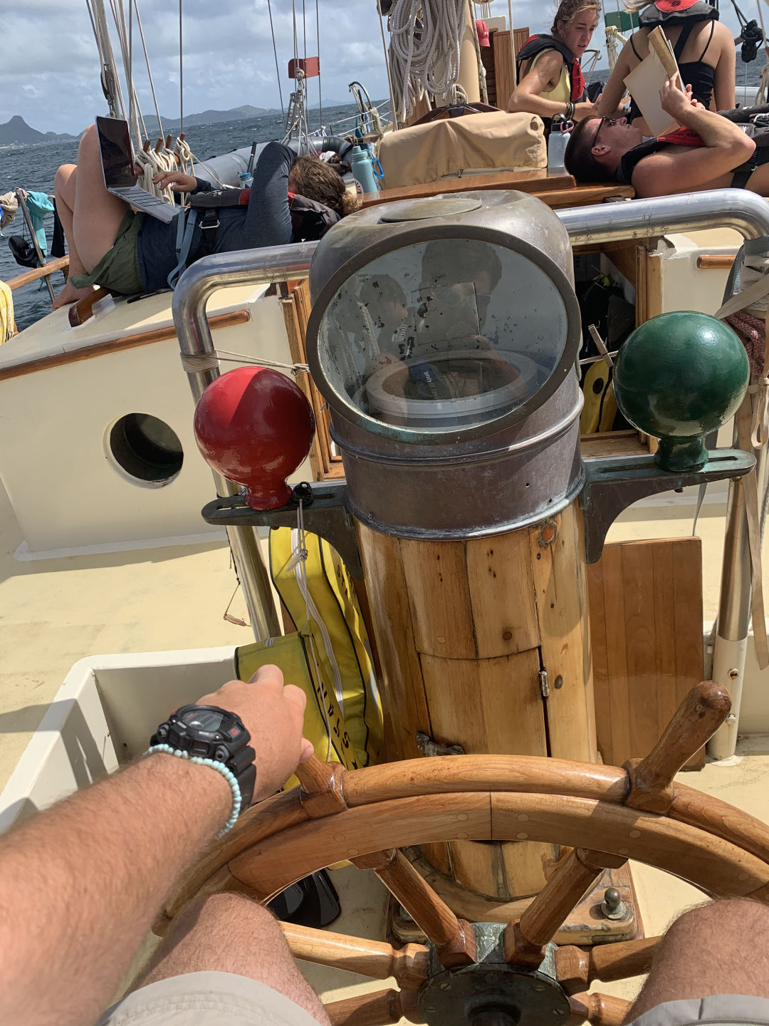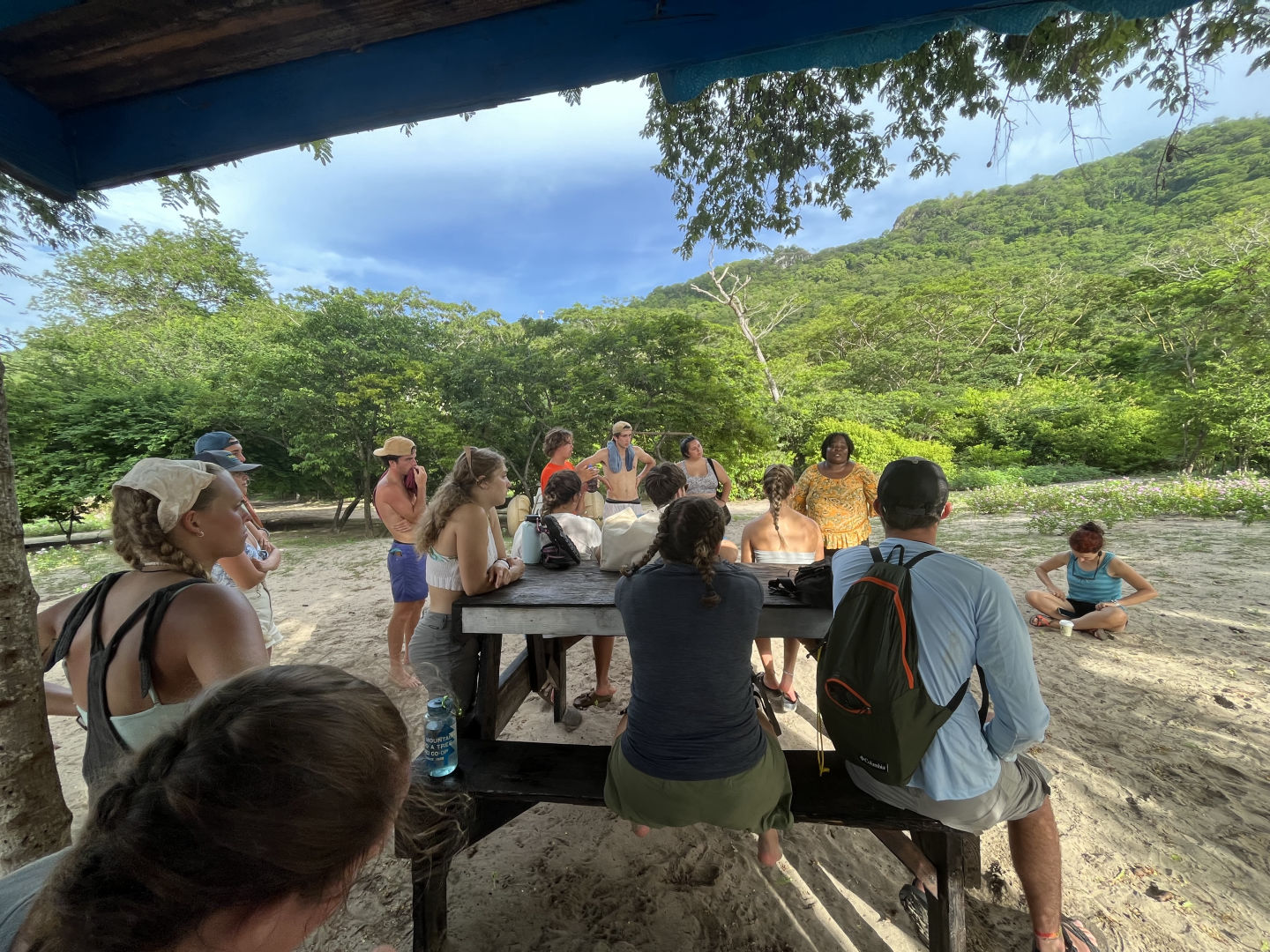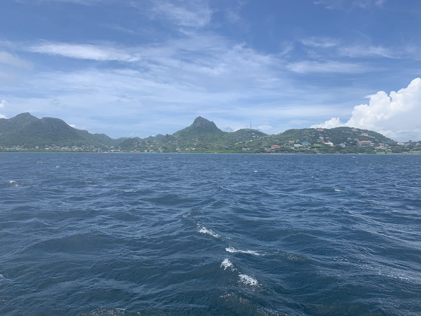 The day began with an optional sunrise snorkel off the shore of Carriacou. Next, we had a 2-hour passage to get from Carriacou to Chatham Bay on Union Island, dropping anchor surrounded by the peaks of the island. Later in the day, we headed to shore to meet with the head of the Union Island Environmental Alliance, Katrina, who began the program with just herself and expanded it island-wide over the last 27 years. The wet landing to get to shore hit a snag as people found out the hard way that the shallow water was covered with urchins. We ended the day with a lasagna dinner and a student lead leadership class.