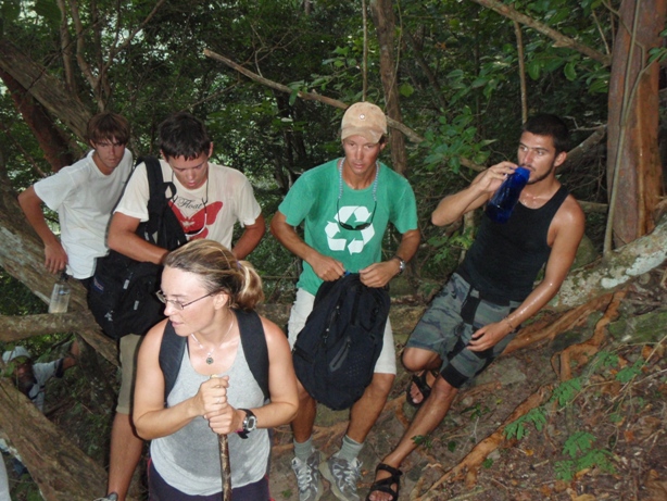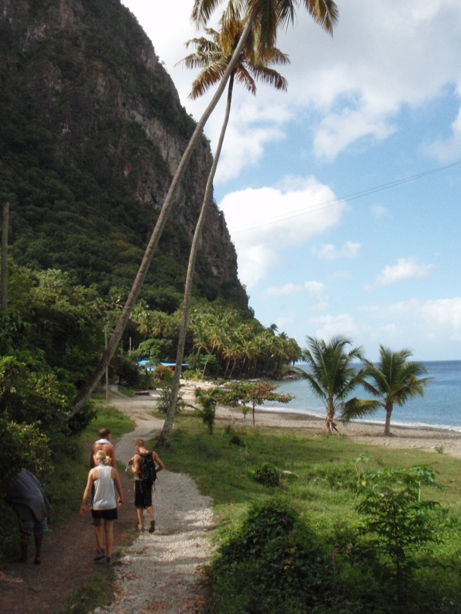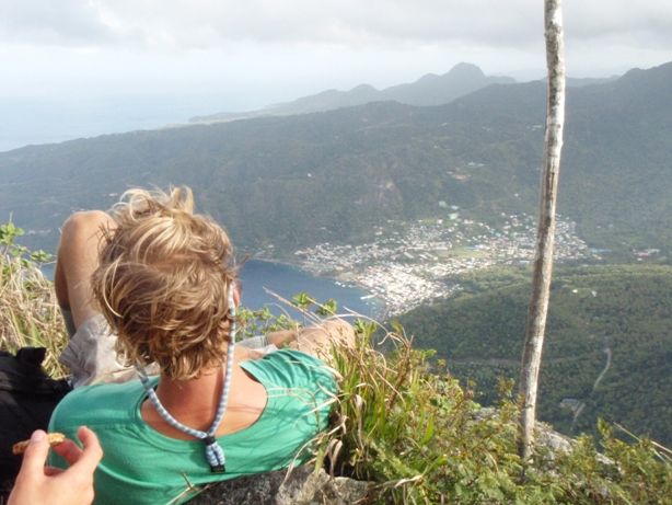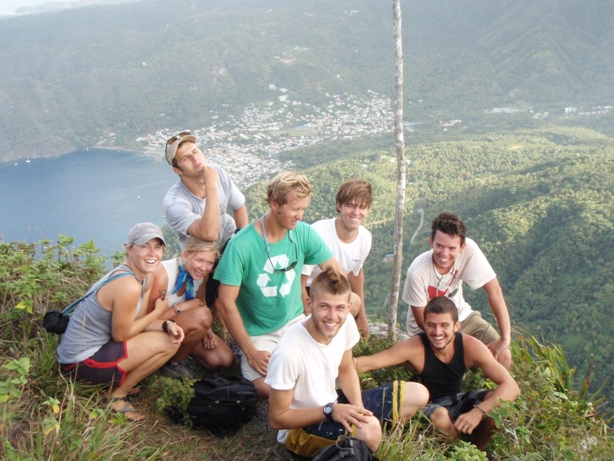 Alarms sounded at 05:15 this morning, not a fire drill or safety alarm but a wake-up call. The bulk of the crew quickly ate a breakfast of oatmeal in order to fortify for the climb of the dramatic Piton. This 2,438′ monolith juts out of the ocean like the point of a pencil. By 06:30, we began the steep ascent. The group moved well together, with our guides leading the way through the technical sections that sometimes required the use of ropes to pull oneself up. By 08:00, the entire group had reached the summit, and we all sat down to enjoy the vista and a granola bar. Once back aboard, we prepared for a short trip up the coast to Marigot Bay, where we are currently anchored. Tonight, the crew will be given shore leave to celebrate Valentine’s Day.
