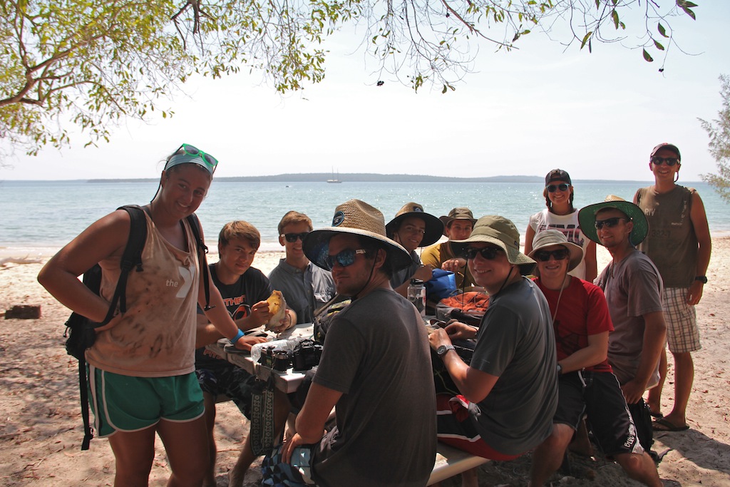 Right at 7:10 am, the merry sounds of Debbie Reynolds and Gene Kelly made their way through the cabins, awakening everyone to another gorgeous day off the coast of northern Australia. After a gourmet breakfast of eggs Florentine (skillfully prepared by Jack, Sam, and Hannah), we all engaged in an odds vs. evens water chug boat race one liter each. Despite several attempts at cheating by the evens, the odds (my team!) emerged victoriously. Forcefully hydrated, we all piled into the dinghies and headed to Victoria Settlement. Victoria Settlement was established in 1838 by the British in response to Dutch and French expansion in the southern East Indies. Seven years later, however, the settlement failed and was finally abandoned in 1849. Few British soldiers could stand the heat and bugs; after experiencing them for ourselves, we can totally empathize.