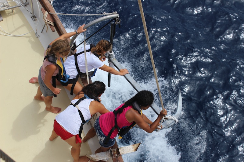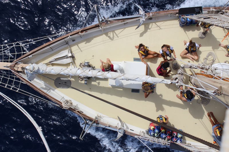 Woke up this morning to some delicious French Toast (ironically not from France, which even more ironically is where we actually ended the day) served with a tray of fresh Dominican fruit courtesy of Ivy and Alex. Basic Seamanship class was next on the cards, where the crew learned about the various safety equipment onboard, ranging from fire extinguishers to the different types of Personal Flotation Devices. Following the class, we had a beautifully calm but relatively quick passage under four sails across the water to a collection of Islands known as Les Saintes. Les Saintes are actually part of Guadeloupe, which in turn is still under central French Government Control. This is immediately clear when cruising along the coastline, and it becomes apparent that you’re looking at what appears to be the quintessential Mediterranean town, complete with red rooftops and brightly colored brickwork. In keeping with Mediterranean tradition, the island embraces the lunchtime siesta ranging from about 10 am until 3 pm (yes, it becomes very hard to get anything done outside of these times as the whole town, barring the Gelato cafe and local creperie, turns themselves in for an afternoon nap). After anchoring the boat in a picturesque little bay known as Pain de Sucre, the shipmates spent the afternoon writing oceanography papers or studying for the upcoming seamanship exam. Everyone is very much looking forward to a breakfast of fresh croissants, baguettes, and an array of cheeses in the morning and a French Caribbean adventure, which will include a night dive.