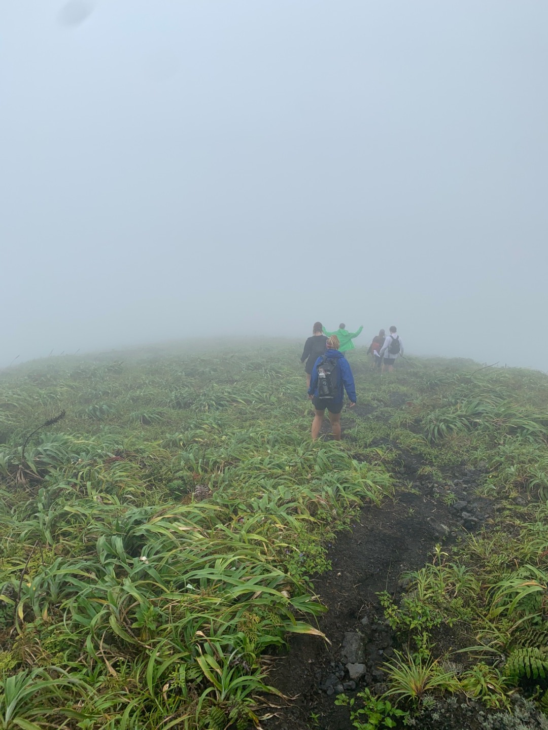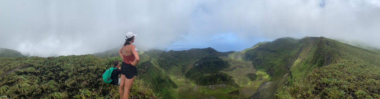Today featured one of the best hikes I’ve ever been on in my life. Our exciting excursion called for an early morning wake-up at 5:30, which I executed by playing “Oompa Loompa” from Willy Wonka and the Chocolate Factory. It was received well, and everybody was up for a quick breakfast of pumpkin bread before we dinghied over to the awaiting taxis onshore. We arrived at the site at 8:30 in the morning. The volcano we hiked was called “Mount Soufriere” (‘sulfur’ in English) and is currently considered active, showing signs of magma activity as recently as the 1970s. This was the first volcano a lot of us have ever hiked and the first active volcano any of us have hiked in the past. The route up was 3.75 km, with approximately 600 m of elevation, which took us just under 90 minutes. It was steep, very foggy, and humid as could be at first. However, as we got towards the summit, the humidity dissipated, and a cold breeze carried us to the top. The view from the top of the crater was absolutely amazing regardless of the fog, and we met some fellow adventurers as well. From the top of the crater, we saw an unbelievable amount of green and a small pond inside. While some of us chose to stop and eat lunch, others were quick to start trekking around the crater’s rim. It poured for a bit while we were on top of Mount Soufriere, and it was nice to feel cold again for the first time in weeks. Our descent was much quicker, although a few of us almost got lost in the fog, and we were able to stop again near the bottom for the second round of lunch sandwiches and goldfish. Brit pulled out his lifestraw during the meal, and he and Ridge tested it out by drinking from these murky pools of water we were sitting by. (Apparently) it was very tasty and refreshing.