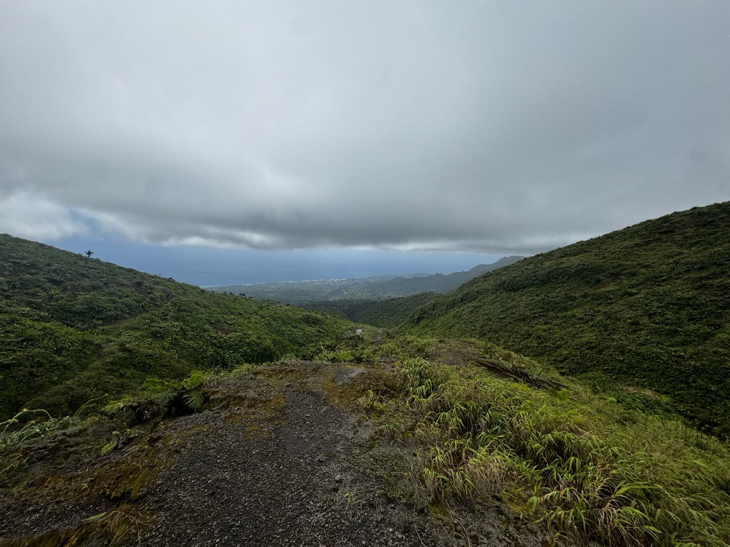 We went on to a stunning forty-five-minute drive across Saint Vincent, where we got to see lots of the vegetation that makes this island seem like an emerald gem after our Atlantic crossing. Eventually, we arrived at the start of our volcano hike, where we met our hiking guide. We navigated the four-hour hike through the lower bamboo forests of the volcano until we got to a large river bed. At this point, we took a quick break to stretch, drink some water, top up on sunscreen, and run around a bit. Many of the crew opted for seeing who could get a more aesthetically pleasing plop by dropping rocks into a deep water-filled gully, while others tested out their sword-fighting skills with the bamboo walking sticks we all were given for the hike.