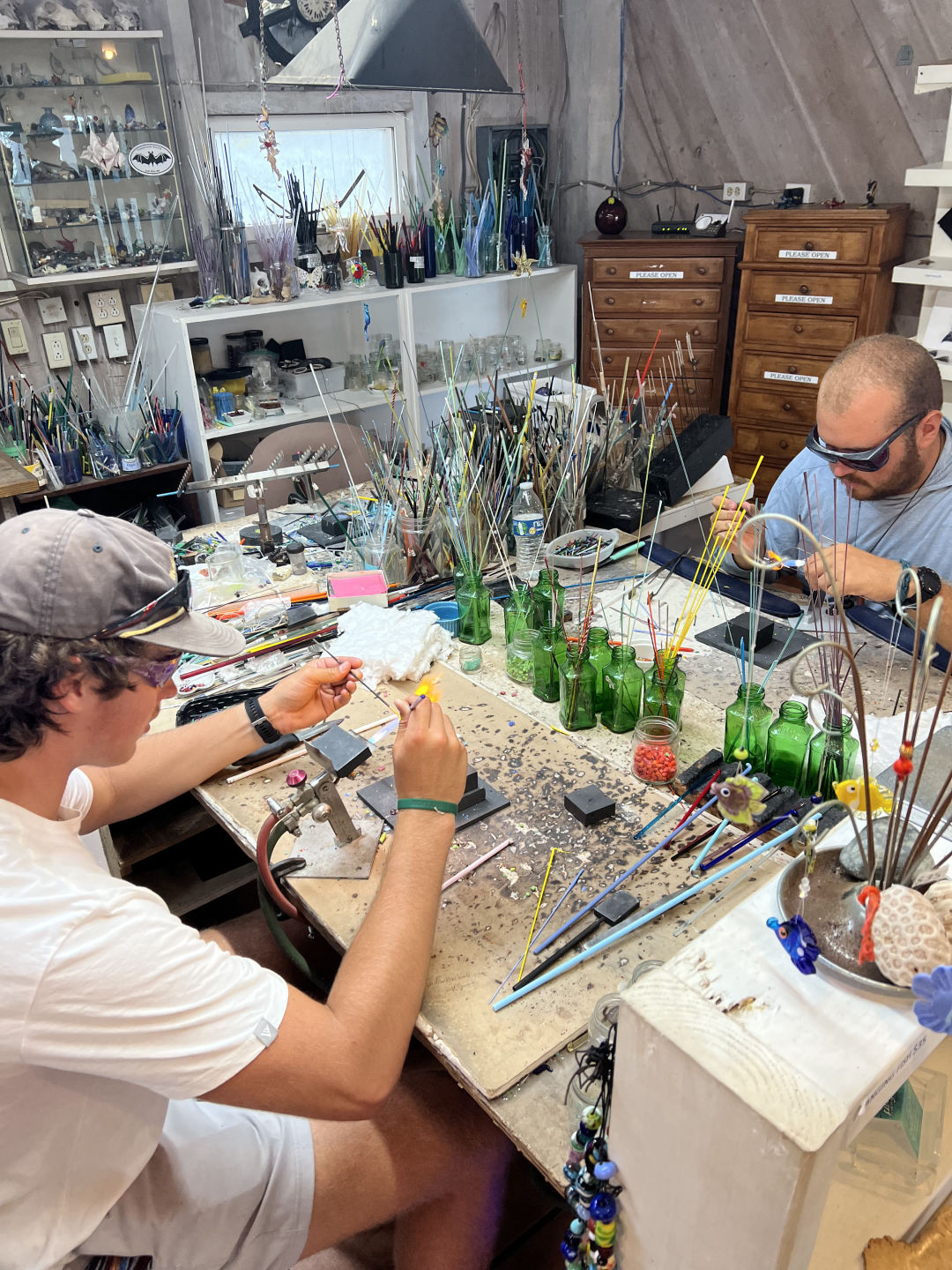 The morning started off with the wonderful smell of bacon and eggs coming from the galley. With Kaden and Benno hard at work cooking up a nutritious breakfast, everyone quickly got out of bed to pack their bags for the exciting day ahead. After breakfast, we loaded up the dinghy and met up with the dive boat for our morning of diving. The first dive site was a deep wall where some people saw nudibranchs, many colorful sponges, and some reef sharks showed up at the end to keep us entertained on our safety stop. Getting back on the boat, we quickly drank through the 5-gallon jug of cold Gatorade to rehydrate for our second dive in Tent Bay. With the high likelihood of seeing the resident nurse shark, Tammy, everyone was eager to get back in the water. Tammy did not disappoint, showing up within 5 minutes of us descending and hanging out for most of the dive (don’t worry, Mom, she was a friendly shark). With diving done, everyone was excited to go to shore and see the long-awaited Joe Bean – a local who runs a glass bead shop where you can make your own glass bead. While everyone went to shore, I went back to the boat, so I will hand the blog over to Emma to tell you all about their afternoon adventuring on Saba.