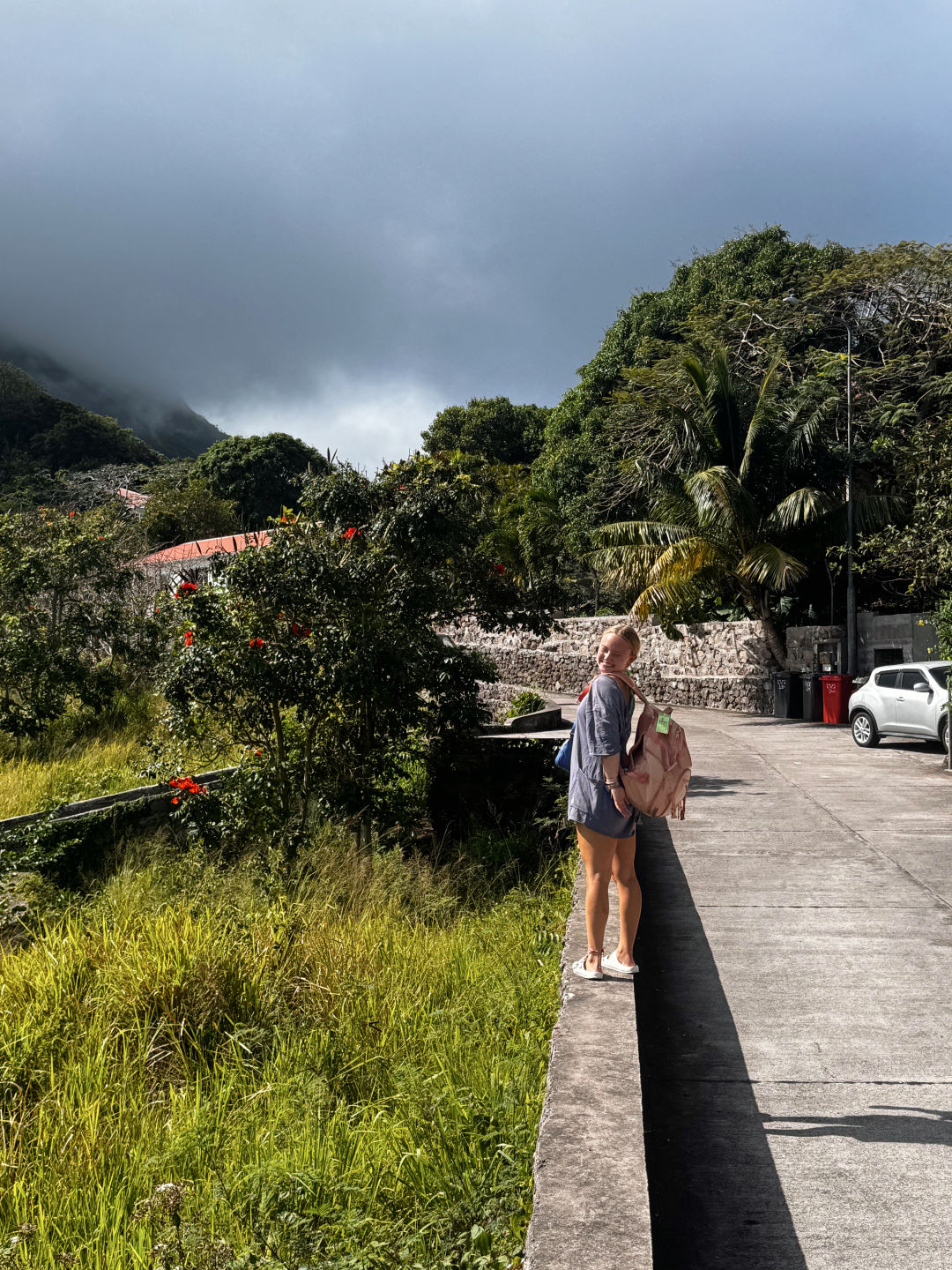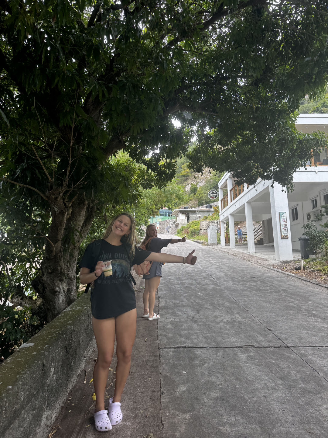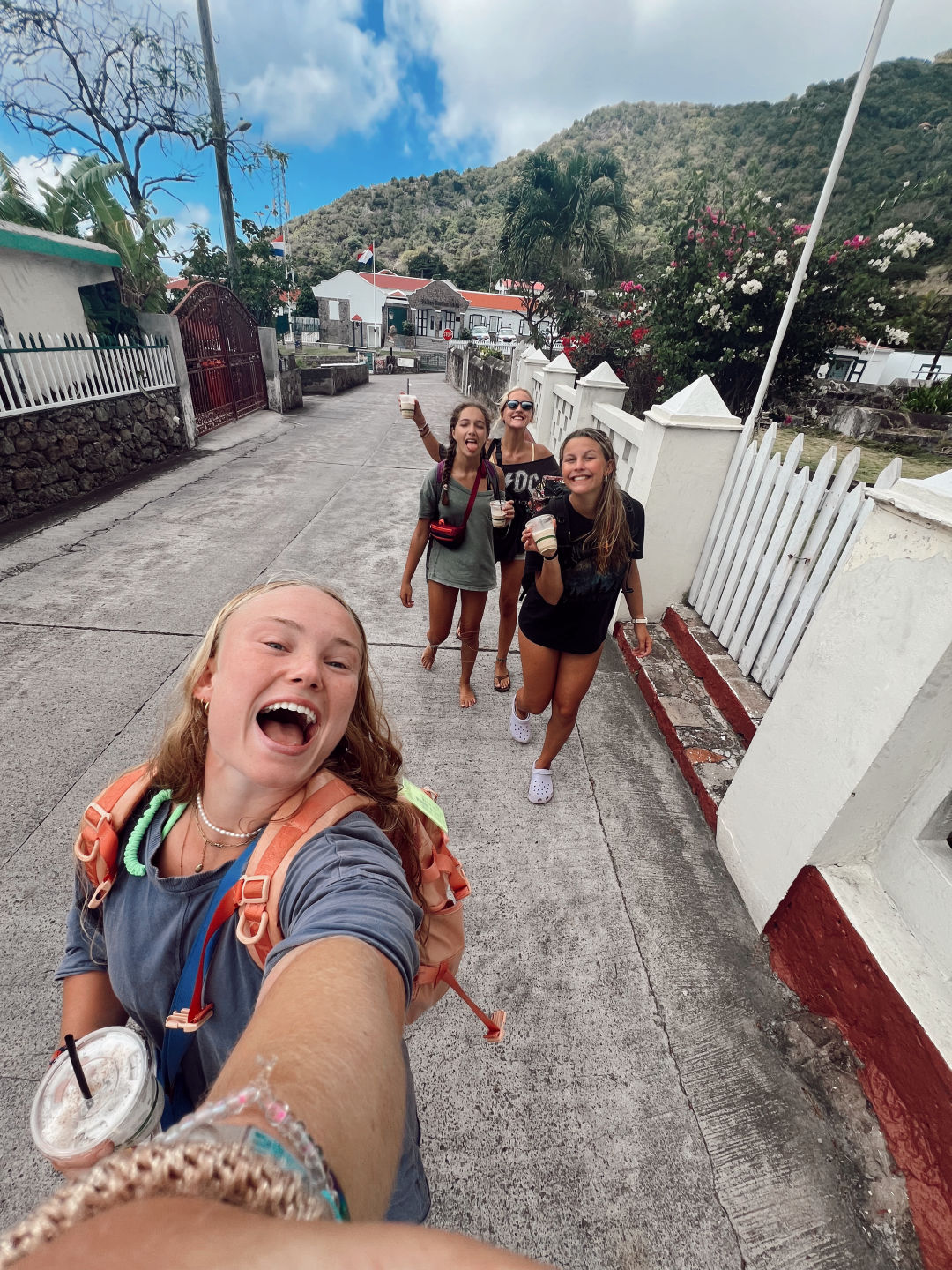 Sup gang! It’s me again, hehe. Shore time on Saba was so sick today! Straight off the dive boat, we all started hiking up the road towards The Bottom in hopes of hitching a ride with some locals. I think we were all a bit hesitant when Steph told us that we could just get in the car with random strangers and that that was safe here, but she was totally right. Within 5 minutes of walking, a car pulled over and told us to hop in. I was in a car with Arielle, Sophia, and Frida, and our driver was part of the police force, so that was cool. We then hitched a ride with these two guys up the windy cliffside roads all the way to the town of Windward. While we were in the car with those two guys, we were all in the back seat talking about how excited we were to go to Jo Bean’s Beads, and the next thing we knew, we were outside her front door. We then spent the next, I don’t even know, maybe two hours in the jewelry shop picking out necklaces and bracelets and then melting our own glass beads. It was so sick! Unfortunately, Jo Bean was not there, but other than that, we got the full experience. After that, we found a little spot for lunch because, at this point, it was almost 4 pm, and we were all pretty starving. After lunch, we walked over to this cool little dive shop, and we all picked up a tee shirt, sticker, or something to commemorate our time here on Saba. After that, we started the trek back down to the dock for our 5 pm pick-up time. Once again, after just a few minutes of walking, a car stopped to pick us up. Frida and Sophia got in the car, but for some reason Arielle and I couldn’t open his back door, and at this point we were causing a traffic jam, so the guy in the car behind said he would take Arielle and I. Our driver was this super kind man named Sean. He told us all about the Island and his life, and then asked Arielle and I if it was ok if we picked up his son at school on our way back which we of course said yes to. We then stopped at a daycare to pick up his adorable 15-month-old, Seth.