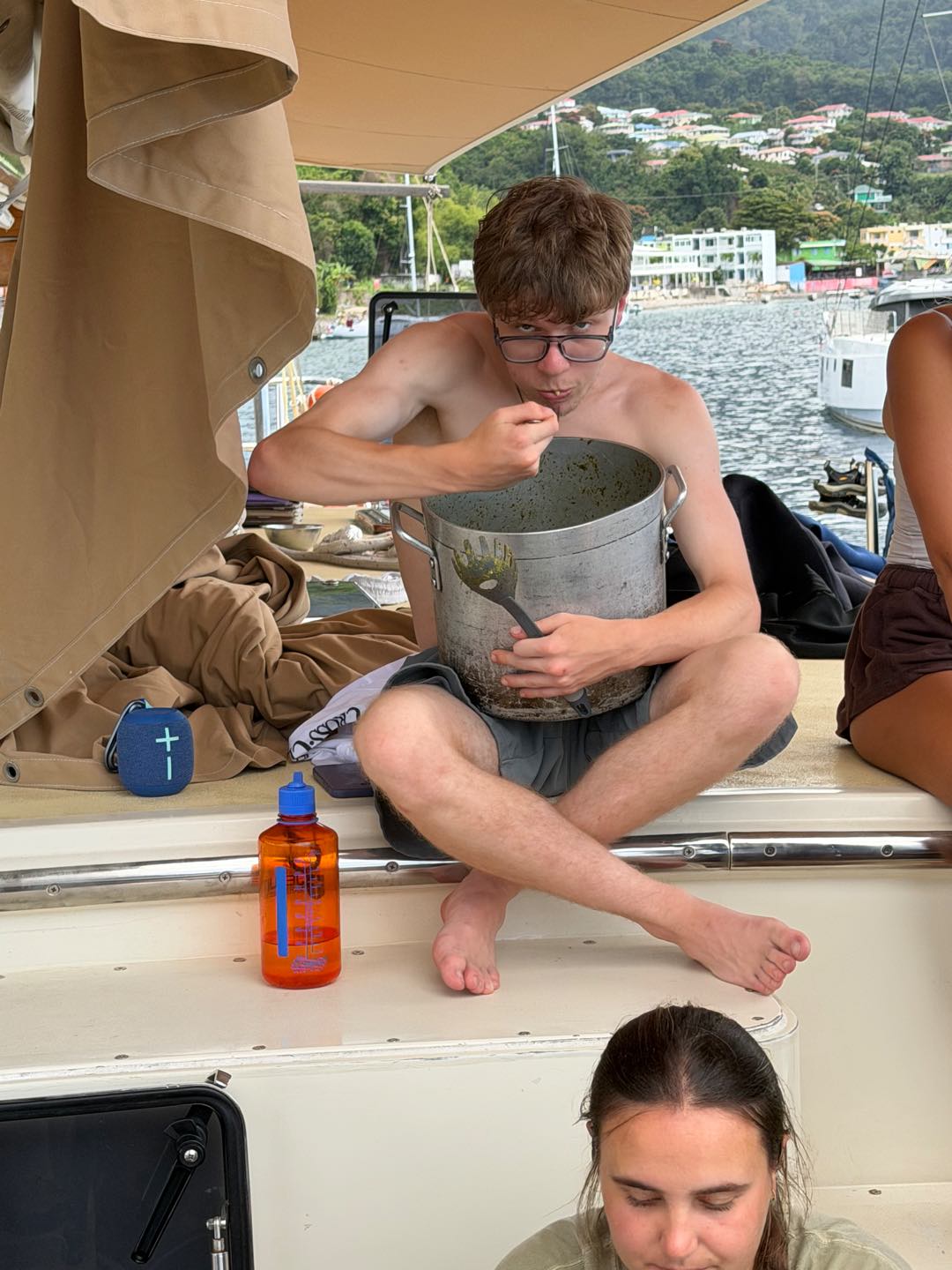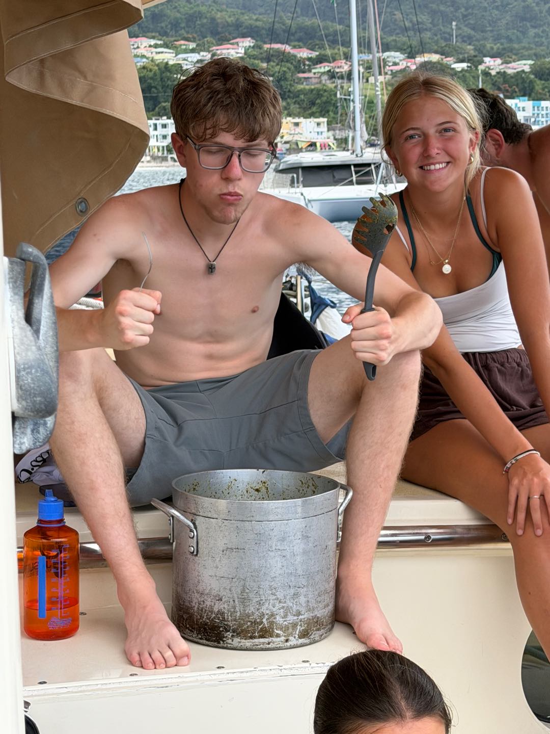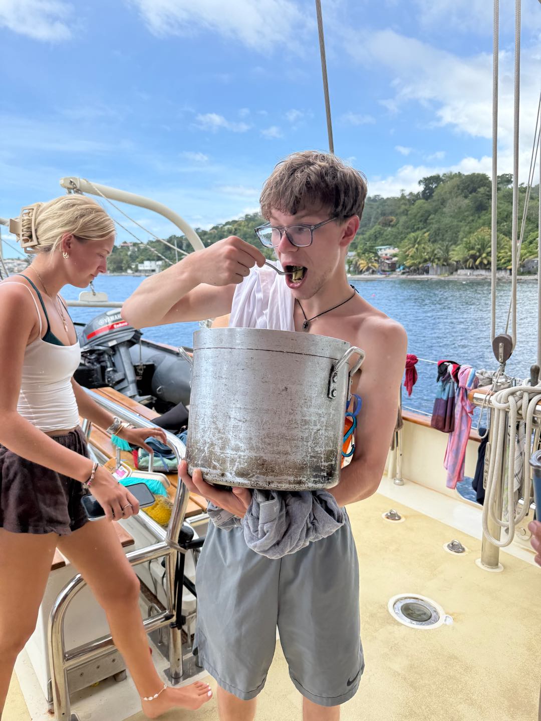 Today was our last full day anchored off the coast of Dominica. We were blessed with three delicious meals by the combined efforts of Aidan and Meg. This morning we focused on our academics: an intro to the history of marine biology, and our first exam (quiz, but you know) for seamanshipwe all passed!! We are on our way to becoming sailors, and experts on the ocean we crave to know deeply and intimately.
