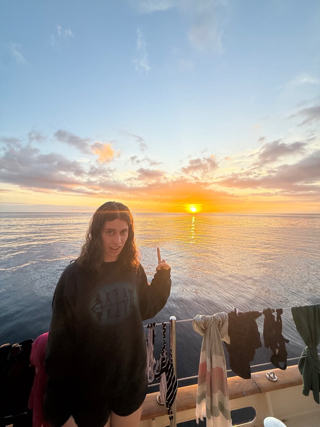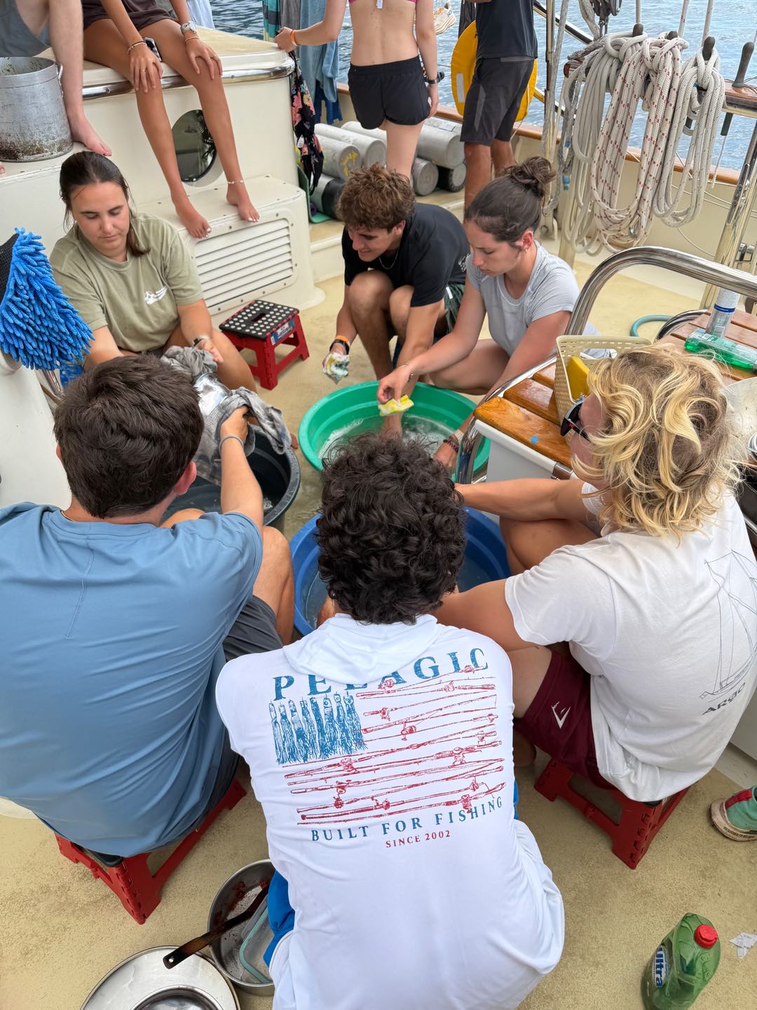 Immediately after lunch, we were kept on our toes, thrown into three drills back-to-back. I wish I could say it was smooth sailing, but I must admit we moved a little slowly. Give us some time, though. This was our first one. However, everyone knew their part when it came to certain watch team duties, so we are leaning fast. Some highlights include us accidentally spraying the fire hose everywhere, trying so hard to put the Gumby suits on, and our moth going overboard. Yes, a moth. We were in the middle of a Man Overboard drill when we found a huge, dead moth on the deck. Someone tossed it into the water, and we more than lowkey spent more energy on the moth overboard than our actual practice man overboard (a big buoy). At the end of the day though, the big buoy lived to get CPR, and unfortunately, the moth parted ways with us and Argo, going to its next destination, wherever that might be.