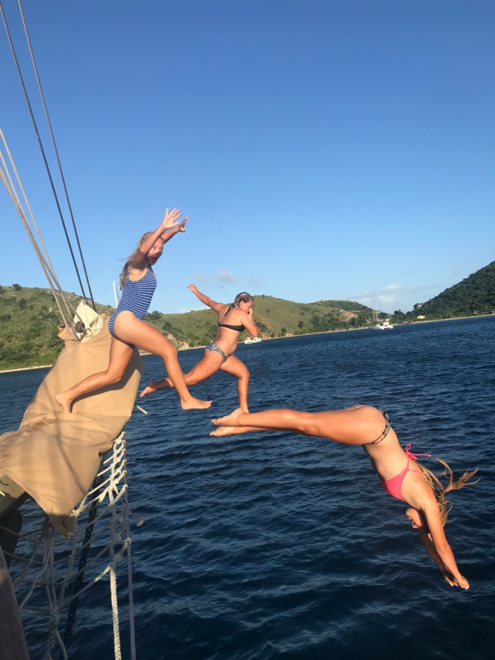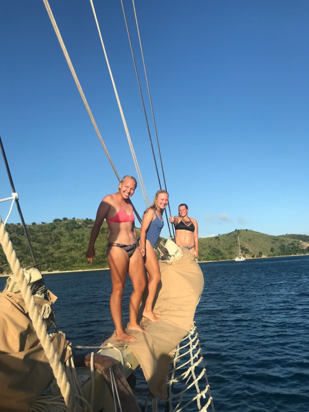 Sydney will be starting her second year at Rutgers University, studying marine biology. Her favorite thing to do on Ocean Star is coil the peak and throat halyards. Allie will be continuing her gap year traveling around Asia, including China, Thailand, and Vietnam. She is the resident banana bread baker on board. Emma (that’s me!) will be entering her third year at Oberlin College, studying psychology, education, and gender studies. Her favorite holiday is other people’s birthdays. Ian L. will be taking classes at the University of South Florida and applying to the Coast Guard Academy. He eats his cereal with peanut butter instead of milk. Sam will be going to Fort Lauderdale to get his STCW certification. His favorite movie is Megamind. Dasha will be continuing her gap year in New Zealand on a whitewater rafting and sea kayaking trip. Her favorite spot on Ocean Star is underneath the anchor light, and her best thinking is done while flaking the anchor chain. Will will also be continuing his gap year doing a finance internship in Dublin. He just swooped the salty bin for the last utensils as I write this post. Sinclair will be taking online classes through the University of Wisconsin-Madison so that she can travel and hopefully WOOF. She has the most expressive eyebrows on board. Zach will be continuing his gap year working and traveling. He once went to a concert every day for 13 days straight. Carolyn will be the captain of Ocean Star next semester. She is the first person in at least three years to sail Ocean Star off the anchor! Ian M. will be the first mate on Argo. He writes his “e”s as a “c” with a loop. Steph will be the program manager on Argo next semester. She can do a human jump rope with her arms. Steve will be the first mate on Ocean Star. Giraffes have the same number of vertebrae in their necks as humans.