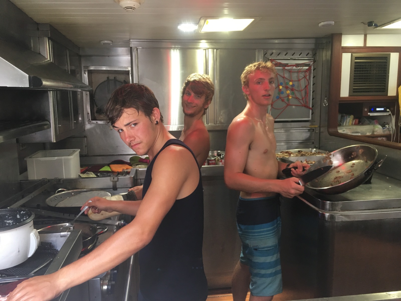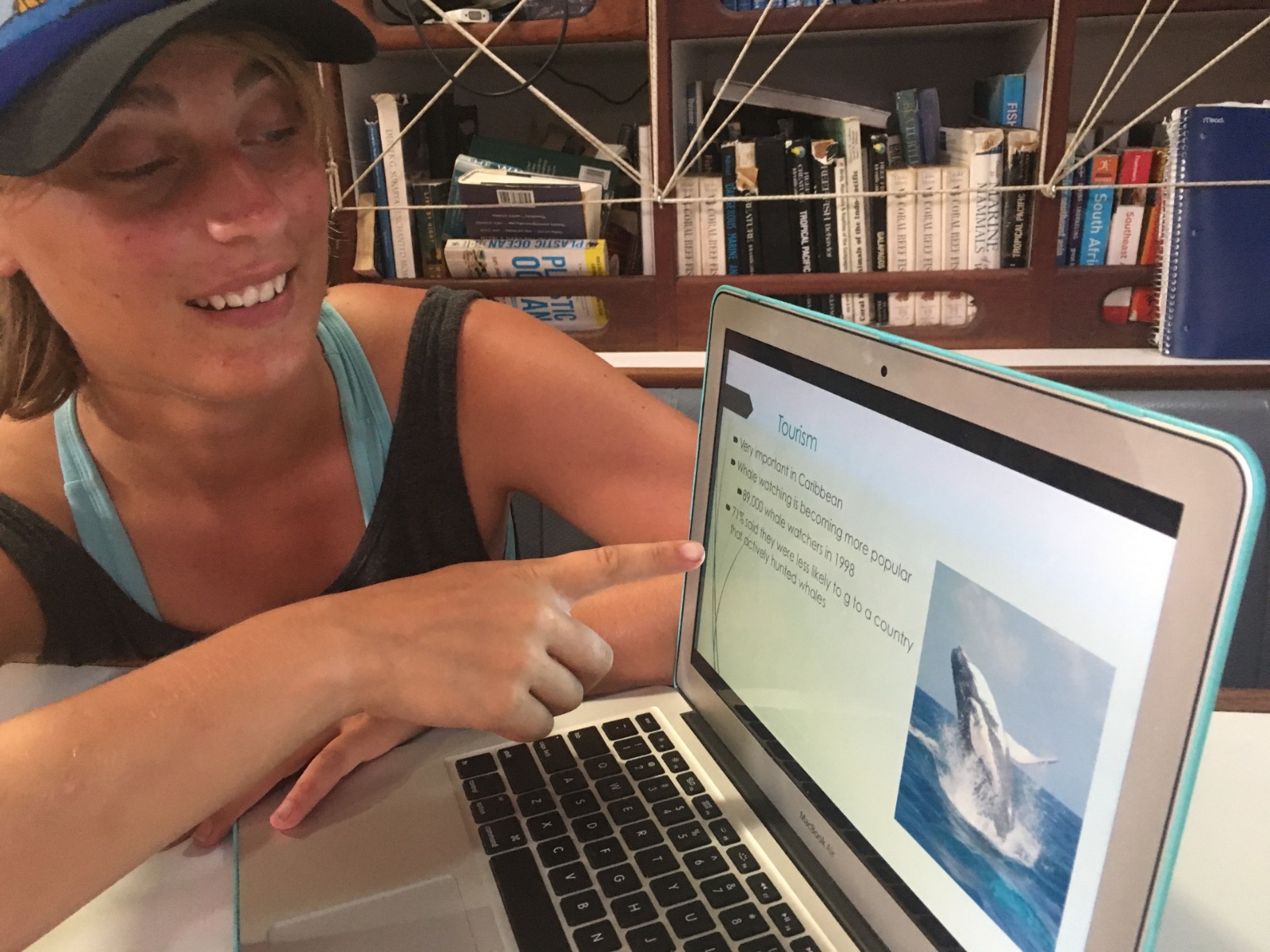 Post clean up, there was an Oceanography class. We heard the first of the students’ research presentations from watch team three members: Anna spoke about Whaling in the Caribbean and its effects on population behavior and tourism. Jack discussed possible remedies to marine dead zones caused by eutrophication. Henry gave his presentation on hydrothermal vents and marine regrowth after volcanic eruptions. Ben discussed pollution and the Canadian government’s regulation of plastic microbeads. Parker debated the considerations that go into the formation of marine reserves, and Hannah educated the crew about the dangers of Ciguatera fish poisoning in French Polynesia.