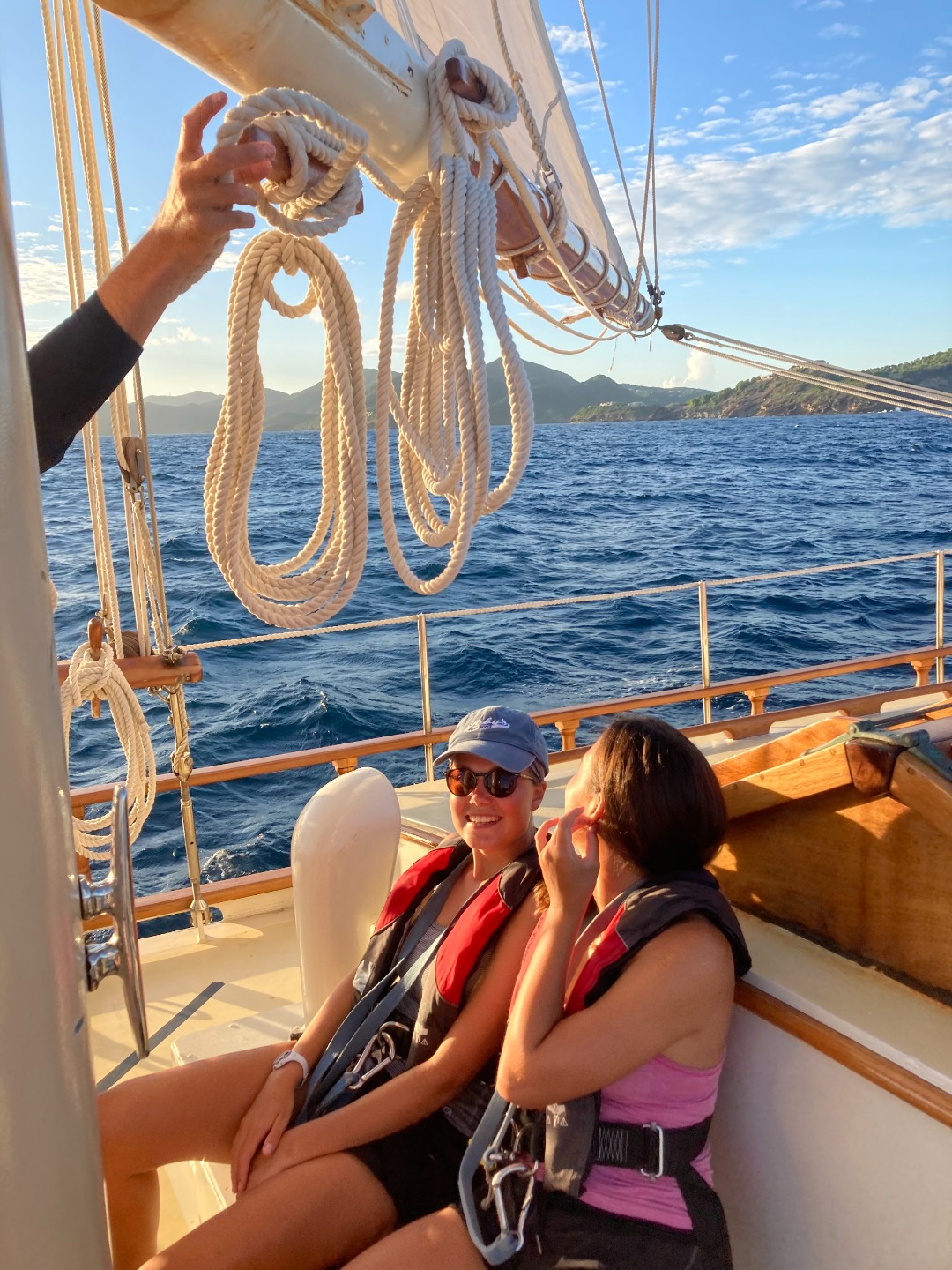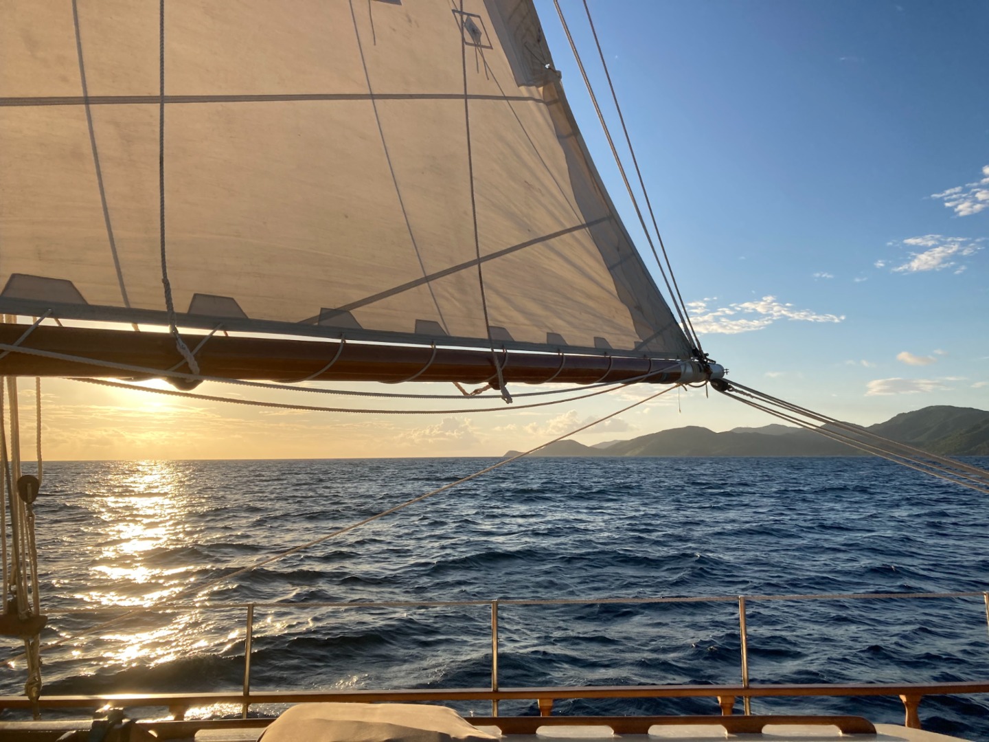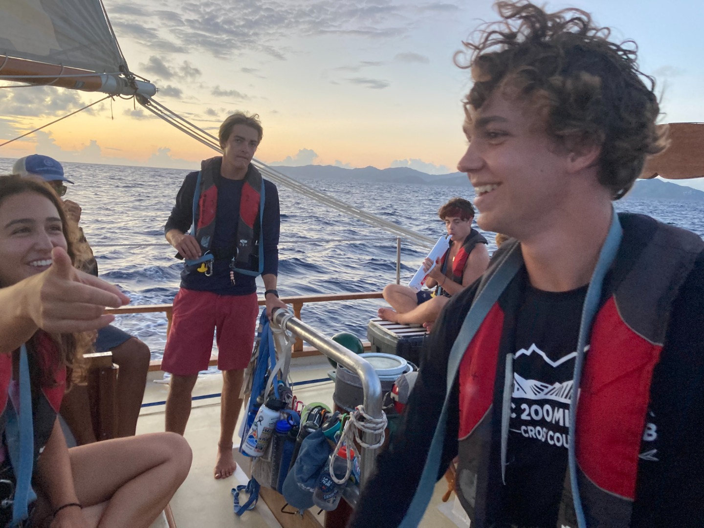 The wind was as strong as the arms that had sweated the boats many sheets. When the sun was beginning to set, all those on deck were warmly welcomed to the open ocean by several swimming dolphins parallel to the boat.