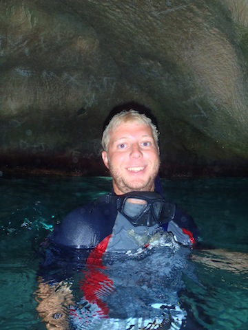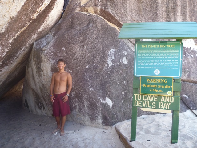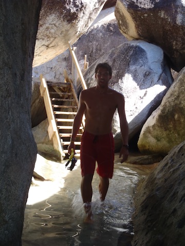 Following this, we tied up to a buoy at the Baths, a beautiful set of beaches separated by massive boulders on land and strewn into the water. We were allowed to explore the natural cave routes through the rocks for around two hours and to swim in the surf, pounding between rocks. The highlight of this excursion is definitely the hollow rock. In order to enter the rock, you had to dive below the surface and swim through a narrow passage. Once inside, even a whisper echoed a hundred-fold. It’s hard to describe exactly what it was like; you’d have to experience it yourself. We left just before lunch for Spanish Town. Sound familiar? It should. We’ve been here before! Nearly three months ago, we were at this same location, eating at the same restaurant and shopping at the same supermarket. So weird to think about!