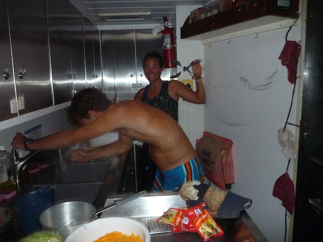 We went to shore for a period in the afternoon to get lunch and internet time. At around 1445, a group returned to OStar to complete their OCE Midterm extra credit test. The rest of us returned to the boat at 1630, along with seven days’ worth of provisionsno more grocery shopping for us. We’re living off what is on the boat until we reach Pussers in West End! Well, I have to be heading off; Finals Week has begun. We have an OCE quiz coming up in about 20 minutes, and I still have some last-minute reviewing to do! But hey, we’re all in the same boat on that score. In a week, today, we will be home. Family and friends: see you soon.