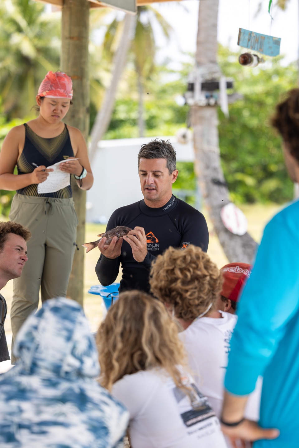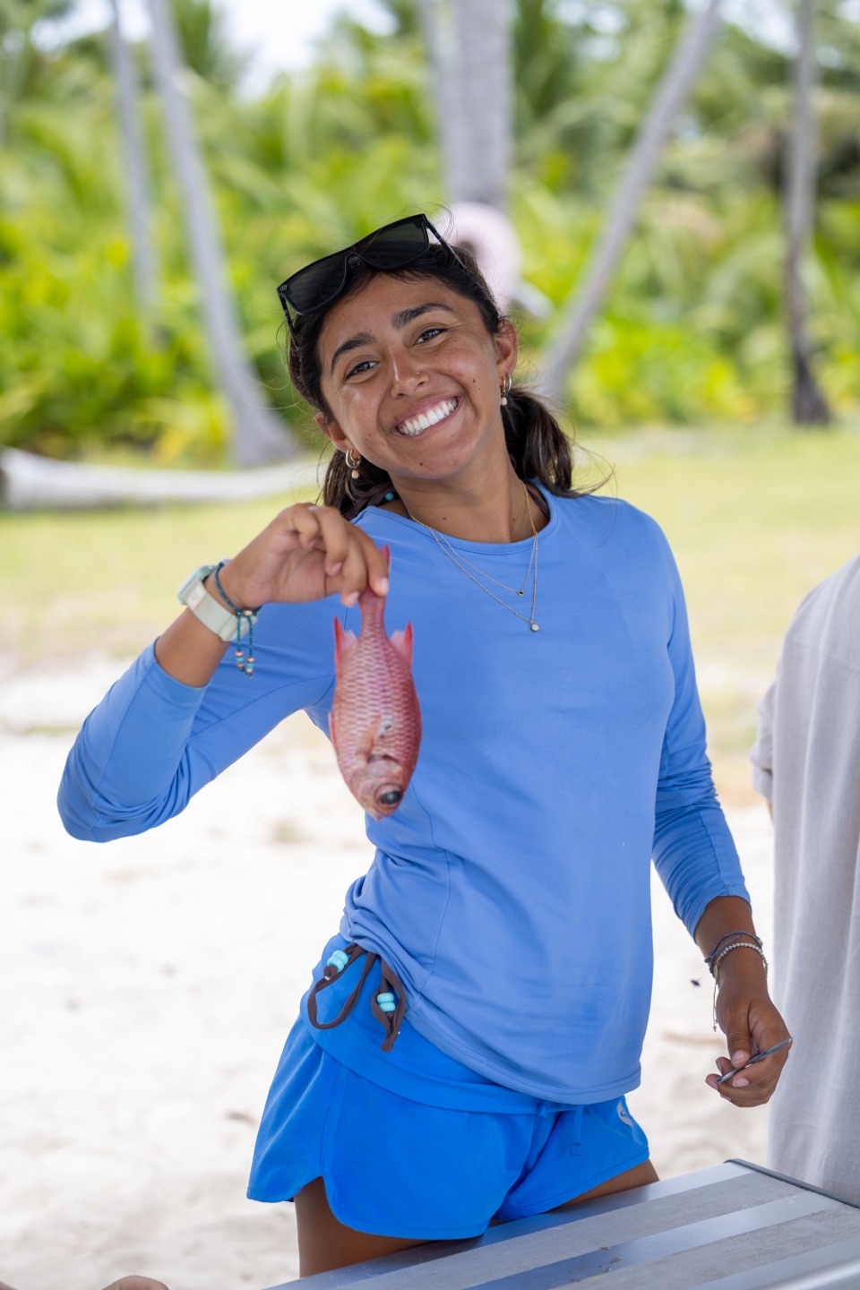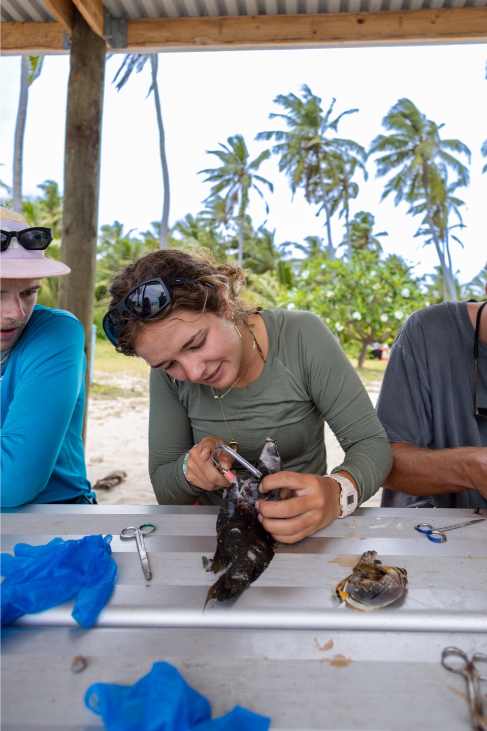 And we woke up early this morning, excited to see even more marine life! Today we had a science class-ish planned with scientist Jean Paul Hobs. But first, we had a delicious breakfast of bread pudding/French toast that really started the day off on a sweet note. Then we got our snorkel gear ready and got everyone on the shore of Direction Island to meet up with JP. We all gathered around some picnic tables and listened as JP shared his extensive knowledge on the history of Cocos Keeling, the formation of its reefs, the unique wildlife, and more! He also brought little pools with samples of live corals, crabs, and mollusks to show us as he taught. After this, we went right into fish dissections. JP brought a bucket with some of the common fish found in the reefs here, and we dissected them right there! We each found the eggs, hearts, liver, and digestive tract of our fish. Then we broke open the skull the see the brain and ear stones! It’s definitely not for everyone, but we all found it super interesting and super smelly. Apparently, Zeke is the fastest fish ear stone finder JP has ever seen! Good skill to have. After the dissections, we went right into snorkeling. We identified and counted types of coral and creatures in certain plots of reef, and it was cool to see how researchers like JP go out and record information right from the reef. After this, we all said our thank yous and goodbyes to JP and made our way back to Vela. We got back and rinsed off for lunch with incredible speed, so ready for the paninis that we’re waiting for us! We thoroughly enjoyed lunch and went right into a marine bio class. We talked about worms and mollusks in class today, and then I hit the hay after class was over. My power nap was a bit longer than expected, but as I was asleep, everyone else rested up or worked on homework, and Vera got her Open Water Dive Cert! I woke up and knocked out some homework, took an ocean shower, and went right into dinner. Keith, Scarlette, and Zeke made steak fried rice, and it was soooo good. For squeeze, my question was “If the person to your left was best friends with a celebrity or TV character, who would they be besties with?” and it was hilarious seeing what popped into people’s minds. Henry said I would be friends with Jennifer Lawrence, which is my new favorite compliment. And finally, it’s now after dinner, and all the students are gathered in the salon. We are all getting some homework done and singing along to some tunes as Scarlette makes cookies and Henry frantically fans the smoke detector to keep it from going off. So tonight will be a night of snickerdoodle cookies and hopefully another manta ray on anchor watch! I can’t believe this is real life!