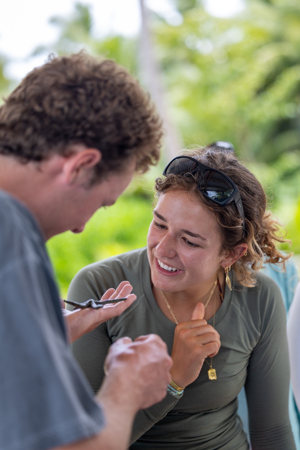 Hey everyone! Today has been an amazing day, but before I tell you about it, let’s jump backward to last night, after Thaxton already wrote the blog for the day. I was sitting in the cockpit with Maia and Mac, in the middle of a quick PSCT class before bed. Our class was very abruptly interrupted when Keith, who was on anchor watch, yelled for us to hurry over and look over into the water. I had no idea what to expect, but his voice was so excited and panicked, we rushed over at top speed. And there was a massive Manta Ray swimming right up against Vela! It must have been over 3+ meters long! We were screaming in excitement, and other people began rushing over to see. We all watched in awe and squealed as it glided around Vela. It was one of the most magical moments I’ve ever experienced, and I could keep trying to explain it, but I’ll never be able to describe it just right. So we went to sleep with our hearts full of joy and our heads full of manta ray dreams.