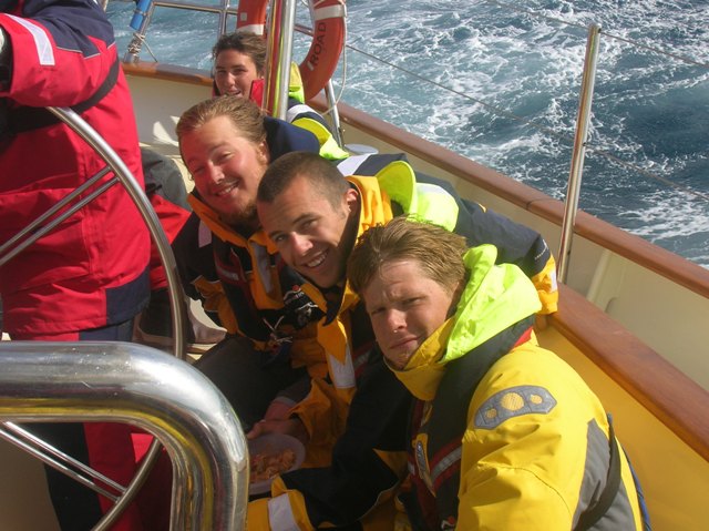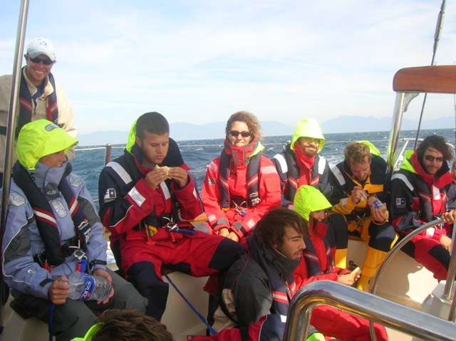 Today, we completed our voyage to Gibraltar! To begin our day, the crew mustered together for a challenging lunch. We all squeezed together in the cockpit and ate sandwiches. Watch Team Four take over from noon to three pm. We had a fun watch because, on bow watch, each of us got soaked head to toe from the waves. After watch, we hung out and prepared to arrive in Gibraltar. The dock we are staying at is very nice, with warm showers and fancy boats around us. It is Isabelle’s 18th birthday today, so at dinner, we made a cake for her! PSCT took place after the meal, and those who weren’t in class were able to explore the quaint town. All in all, a great day!