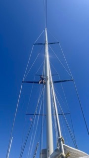For lunch, Olivia made us walking tacos, and we gobbled it down in some impressive heat. As we navigated some shallow corals, Skipper Sidney sent Austin up the mast to the first spreader, where he perched on watch. As soon as he was up, he yelled down at us, “There’s a shark! There’s a shark!” We all run to the starboard rail and peer into the water, and we see nothing. Then, Austin yells, “Wait, no! It’s a mola mola! It’s a sunfish! It’s huge!” We run back to the rail, again not seeing anything. I still don’t know if I fully believe that he saw a mola mola, but he’s a genuine guy, so I guess that makes me jealous…