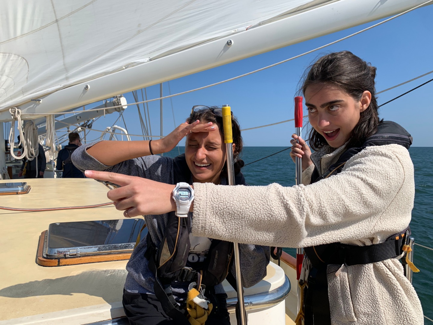 Each watch team took a different sail, and we all practiced tacking and jibing and trimming and easing