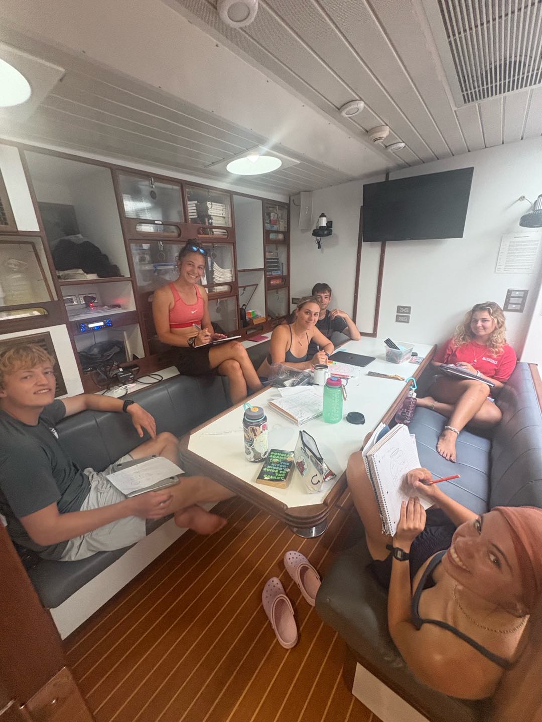 After classes, we all spent the rest of the afternoon enjoying the sailing. Some people spent some time studying up on deck, Zoe and Kyler helmed their way through the 2-6 watch, and Sam and I did a workout together!