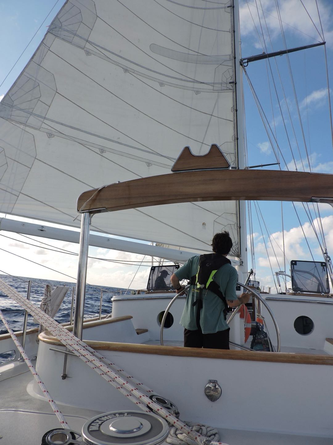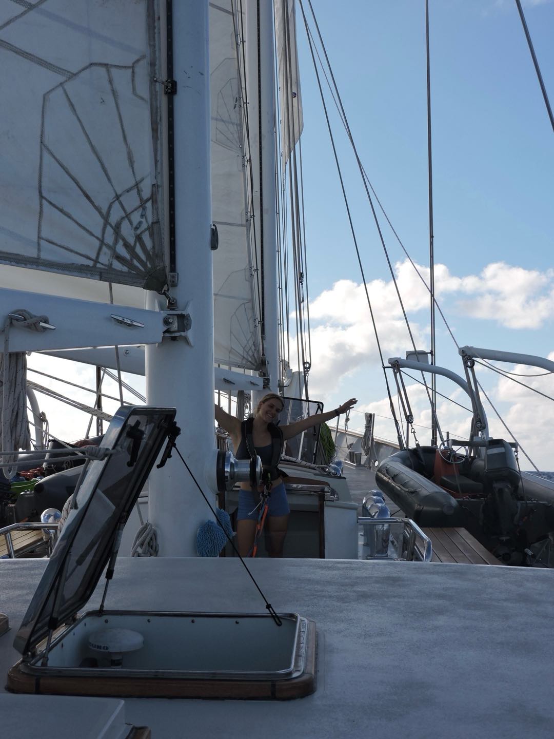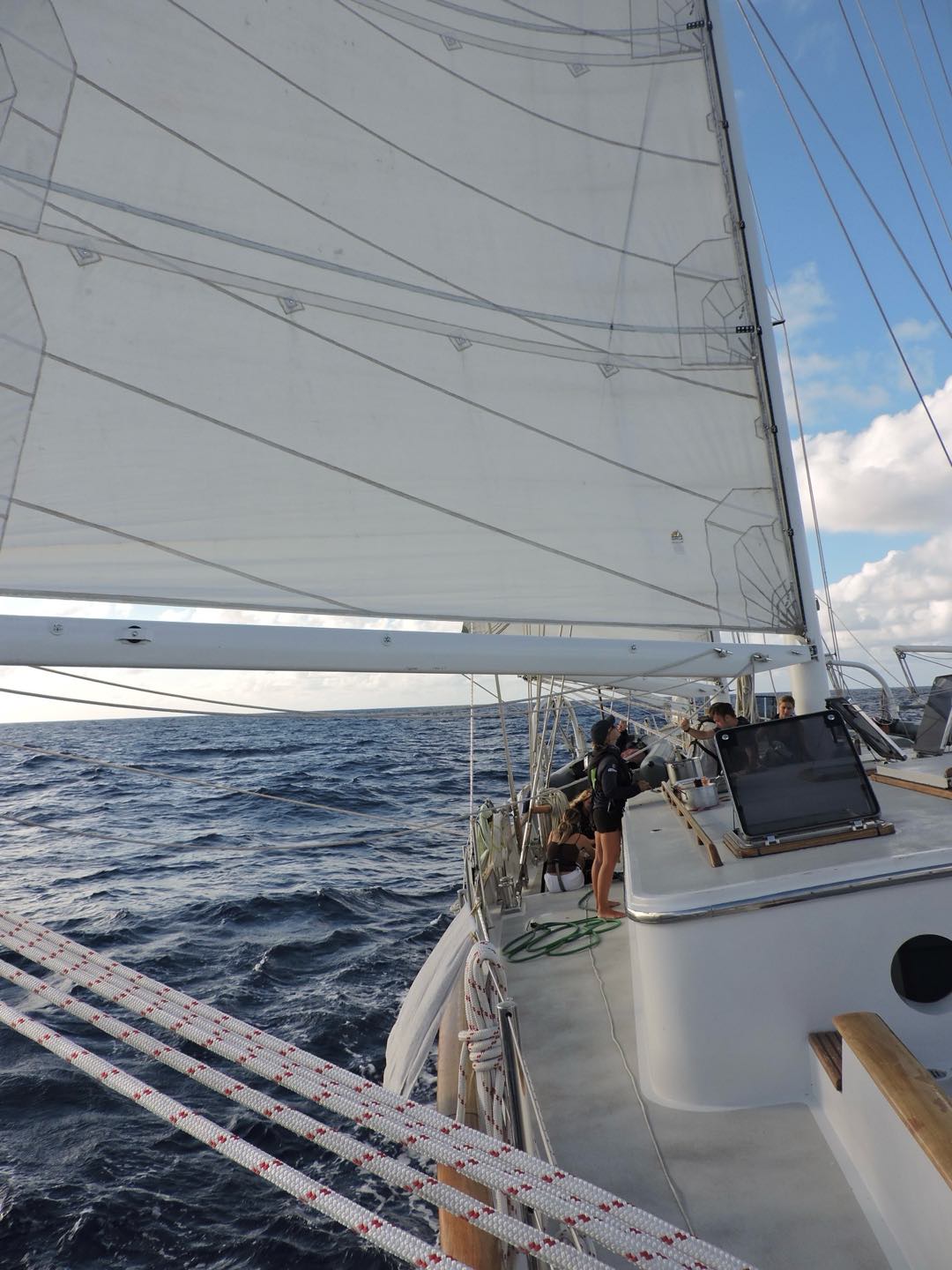 Hello, beautiful people of the blogging world! I think were 5 days into passage maybe Its quite literally impossible to tell. Another day of passage under our belts, but today was special. Today we got to SAIL! The winds have not been so in our favor the last few days, but with a bit more wind behind us, and a main engine service required, today was OUR DAY! Watch team 3 (myself, Perry, Nashota, Henry, and Camilla, with special guest Grant) was the lucky watch team to get to raise the main as well as the flying jib during our 8-12 watch.
