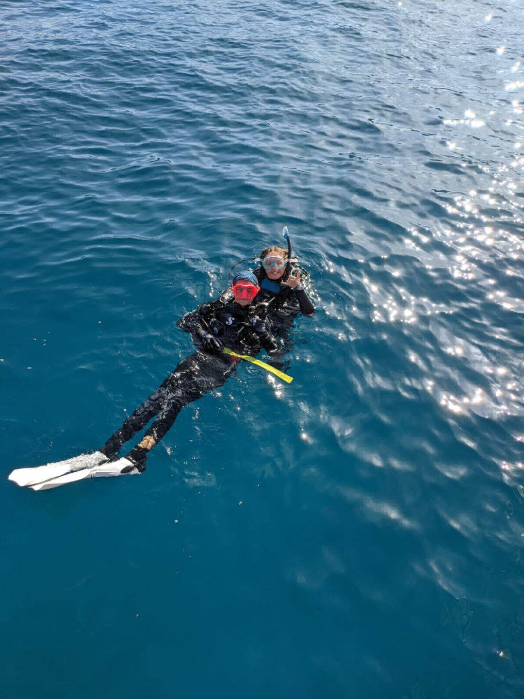 After breakfast, we divided into groups: some stayed on Vela to watch Emergency First Responder training videos while the Advanced-Open Water divers geared up to do their Navigation dive with Sam. As the Divemaster candidates, Rachel and I got to assist with this dive. They all successfully navigated back to the boat, with the only hiccup being Jac’s extreme fascination with the anchor chain. He swam away without a care in the world, and no one could get his attention until Rachel and I went chasing after him. There is one downside to diving off of the boat, which is the front-row seat to the last step in the journey of the result of using our luxurious heads. After the code brown cleared away, Rachel and I completed our Dive Master tired diver tow swim test. The fams will be happy to know that we both passed and swam like little fishies.