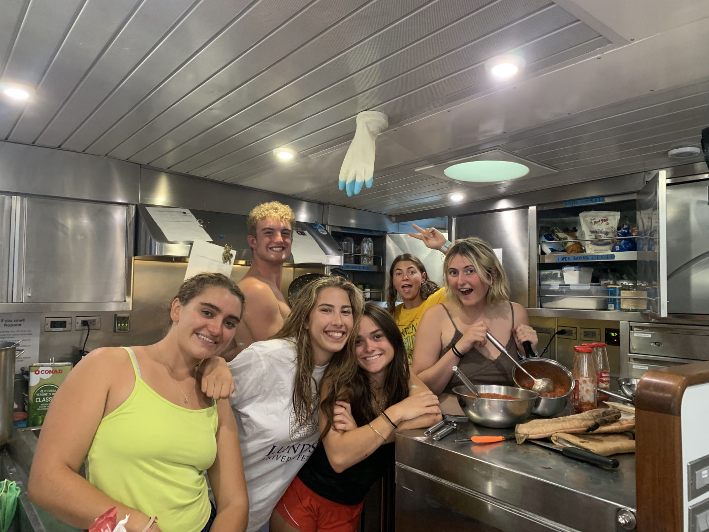 We then had a delicious lunch, and during clean up, Owen discovered a new job for the wheel when a patch of trash floated by. Our new ocean trash master had no hesitation to jump in the water like a golden retriever chasing a tennis ball to collect the trash and do his part to save the ocean. The fishies, thank you, Owen. We switched groups for the afternoon, and some of the newbie divers went for their first open-water dive, where they saw some dope rocks and a sea slug that Jimmy and Carolyn got very excited about (rightfully so). Back on the Vela, a bunch of us went for a swim and hung out on the bowsprit before Nav Master class. We then had time to chill and catch up on homework before dinner. Lizard and Allie surprised us all with a delicious dessert, and we finished the day with brownie cookies and a squeeze.