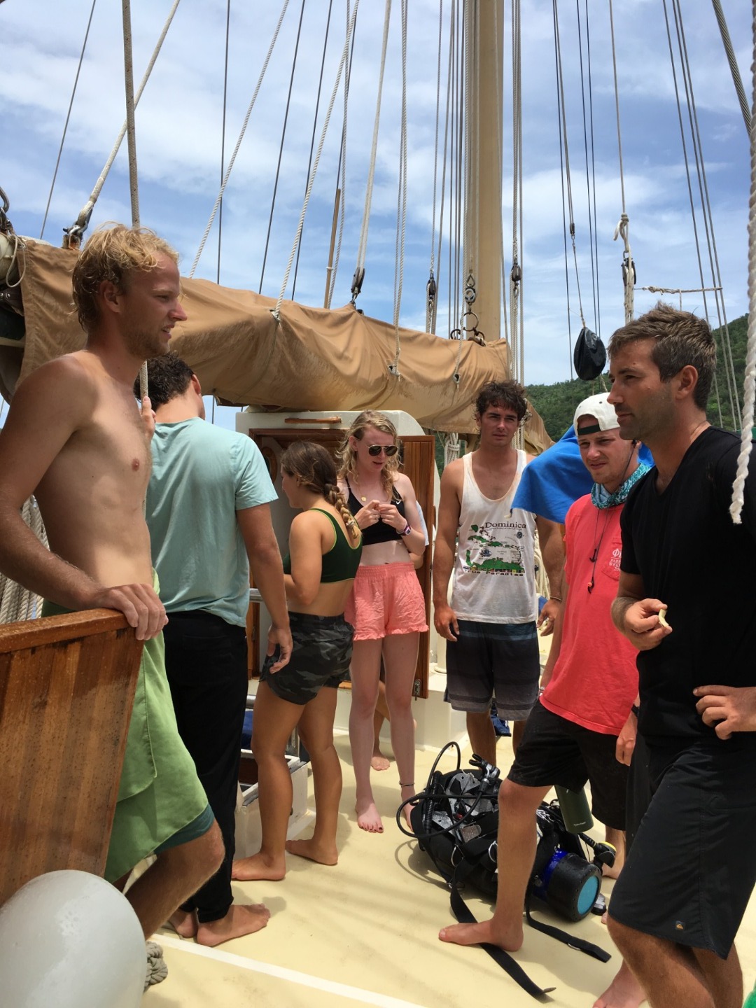 But truly and honestly, nothing felt better than when freshly baked baguettes that Mariah slaved over the oven for and almost got her finger amputated for arrived up through the gopher hole. Sorry for the photo of cheese, but the aesthetic was just too perfect. After lunch was another oceanography speech by Amy on ocean pollution, and then we had study time! While some chose to nap on the bow (Owen), others used this time to finish presentations (myself) or work on group research projects due tomorrow (everyone else and yikes), or study for the Nav test in two days (Evan). To be fair, everyone got work done today, which is a pretty impressive feat, in my opinion. Tomorrow is our oceanography quiz, and research papers are due tomorrow. Also, a fun dive, yay! The views here are absolutely spectacular!