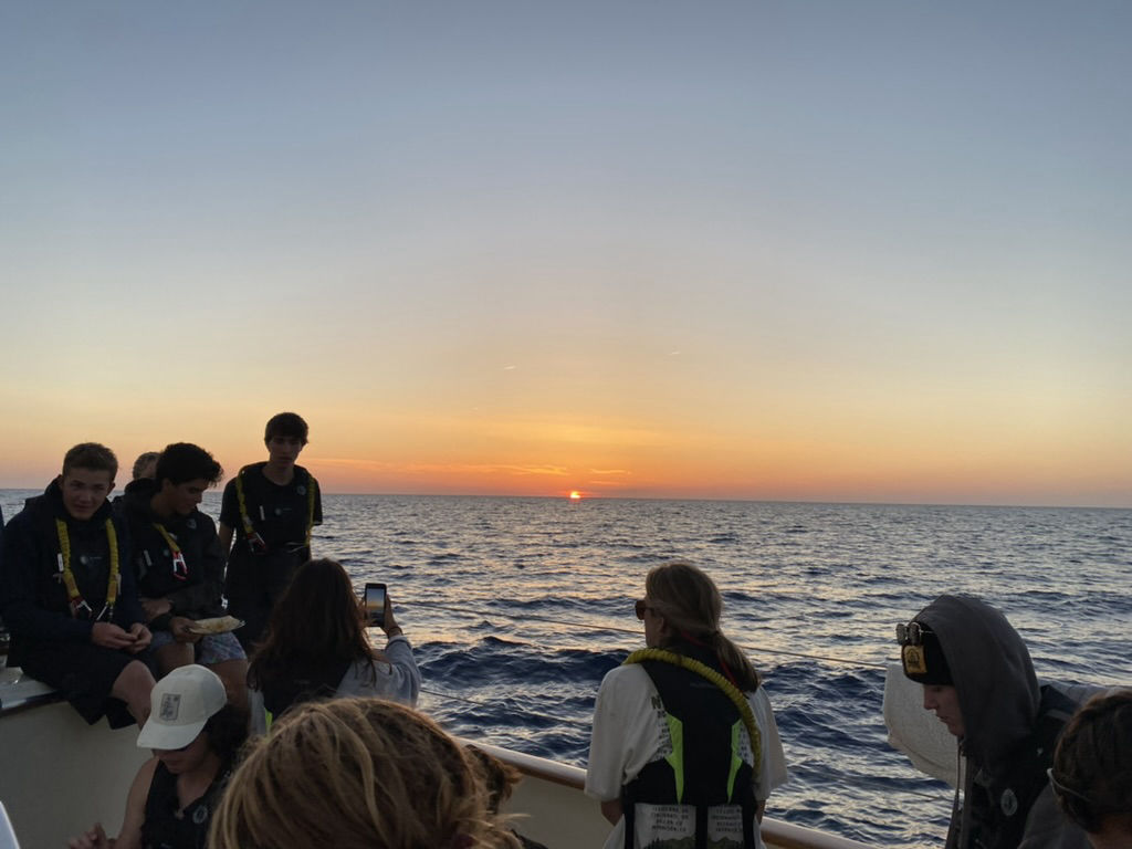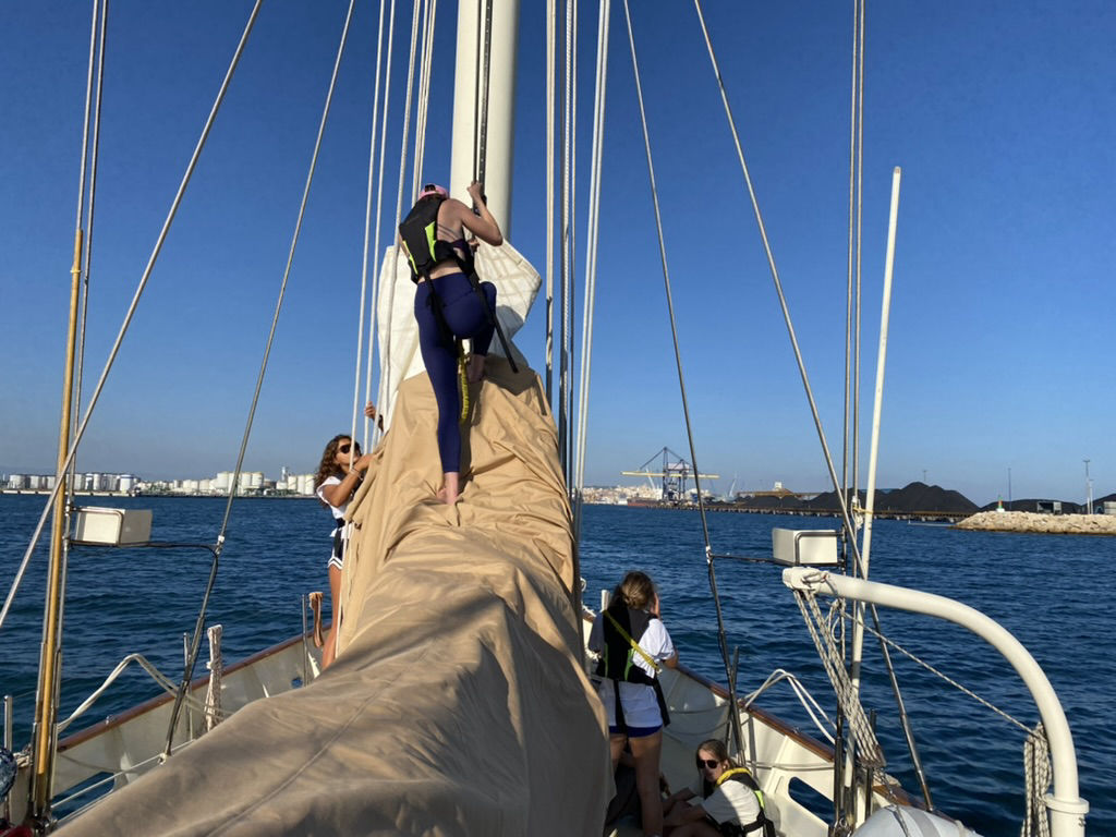 Its day two of passage to Spain!! Weve gotten into a routine of watches, jobs, homework, and precious precious free time. Watch team 1 (the best watch, obviously) had watch from 4 a.m. to 8 a.m., where we played rhyming games to stay awake and huddled together to stay warm. It was a calm night, and we saw too many shooting stars to count. Chelsea pointed out constellations, and were all slowly starting to recognize these beautiful sky patterns. Now, I know where to find Scorpio, the Seven Sisters, the North Star, and some planets. We watched the sunrise slowly come up. I worked on some schoolwork for marine biology after watch but quickly realised sleep was my priority at that moment. Xavi made Mac and cheese for lunch with a view of the Spanish coast as we sailed. We had classes in the afternoon and then got ready to dock in Tarragona, Spain. Sienna was girl-bossing when she put the sail cover on the main staysail and was up super high while we motored into the port. We parked ourselves right next to super yachts and had an audience while we got ready to dock. Then, we all had shore time, and Chelsea, Liam, and I ran to a laundry mat to put our laundry in while we called home and hung out. For a late dinner, we met Gordon, Miles, Eric, and Wednesday and got some of the best Asian food ever. Hilary, Sienna, Greta, Sophia M., and some other girls put their laundry after us, but the dryer broke, and they had to dry their clean laundry on Argo. It was a simple and great way to finally get ourselves to Spain (my first time)!!