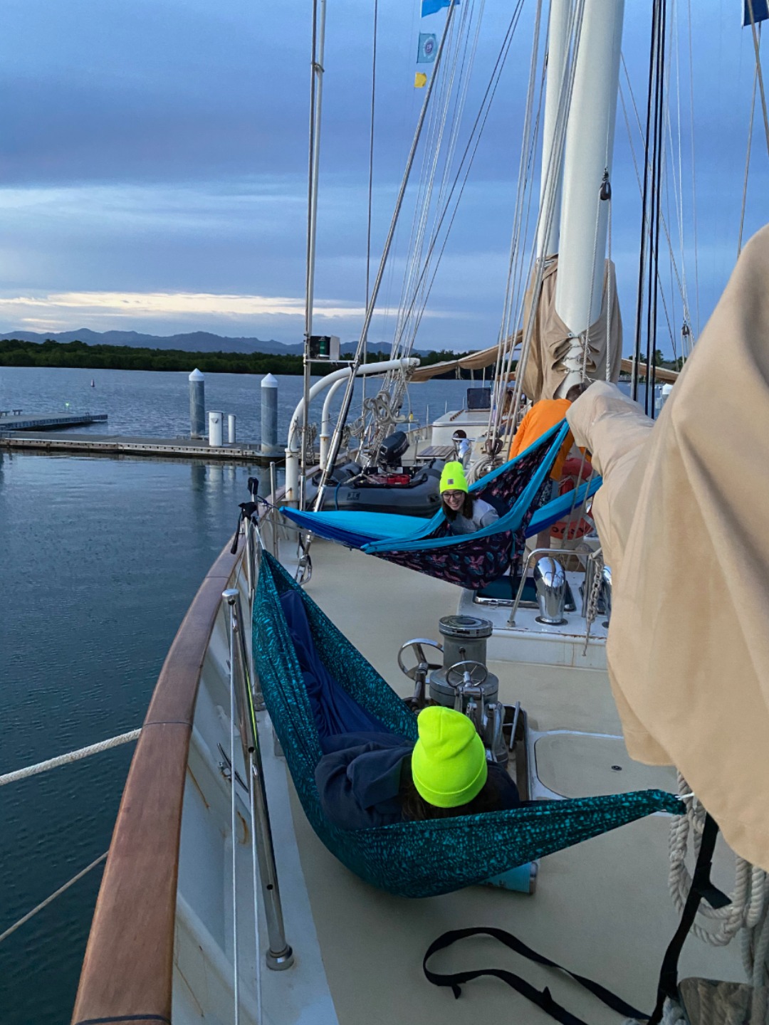 When not underway, sleeping in a hammock on the bow is always a fun experience.