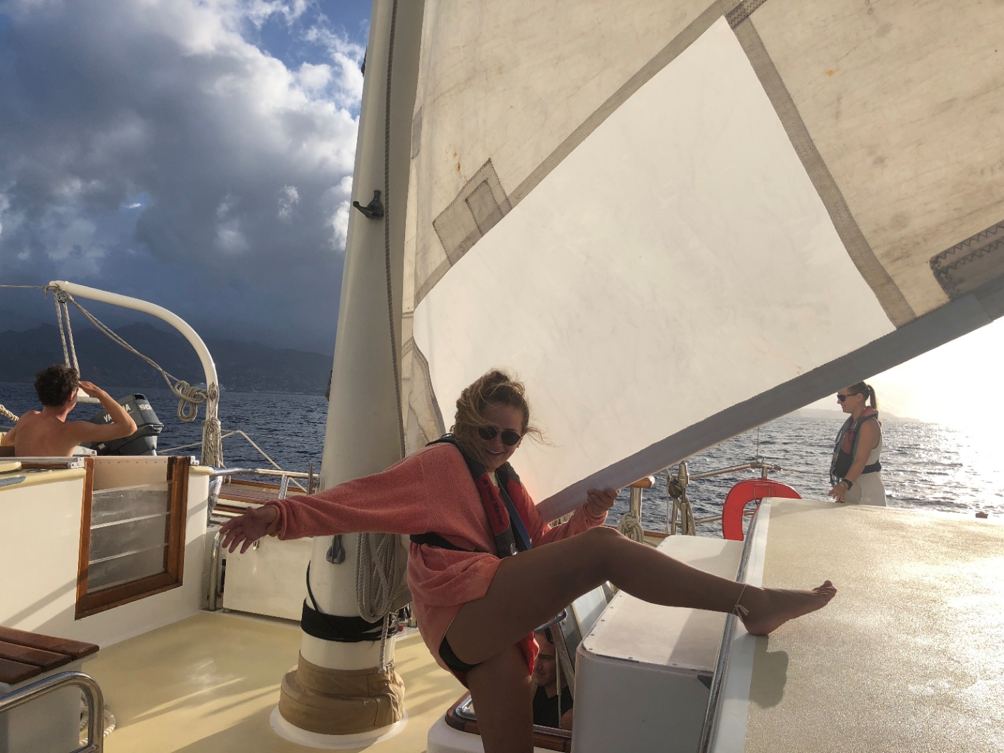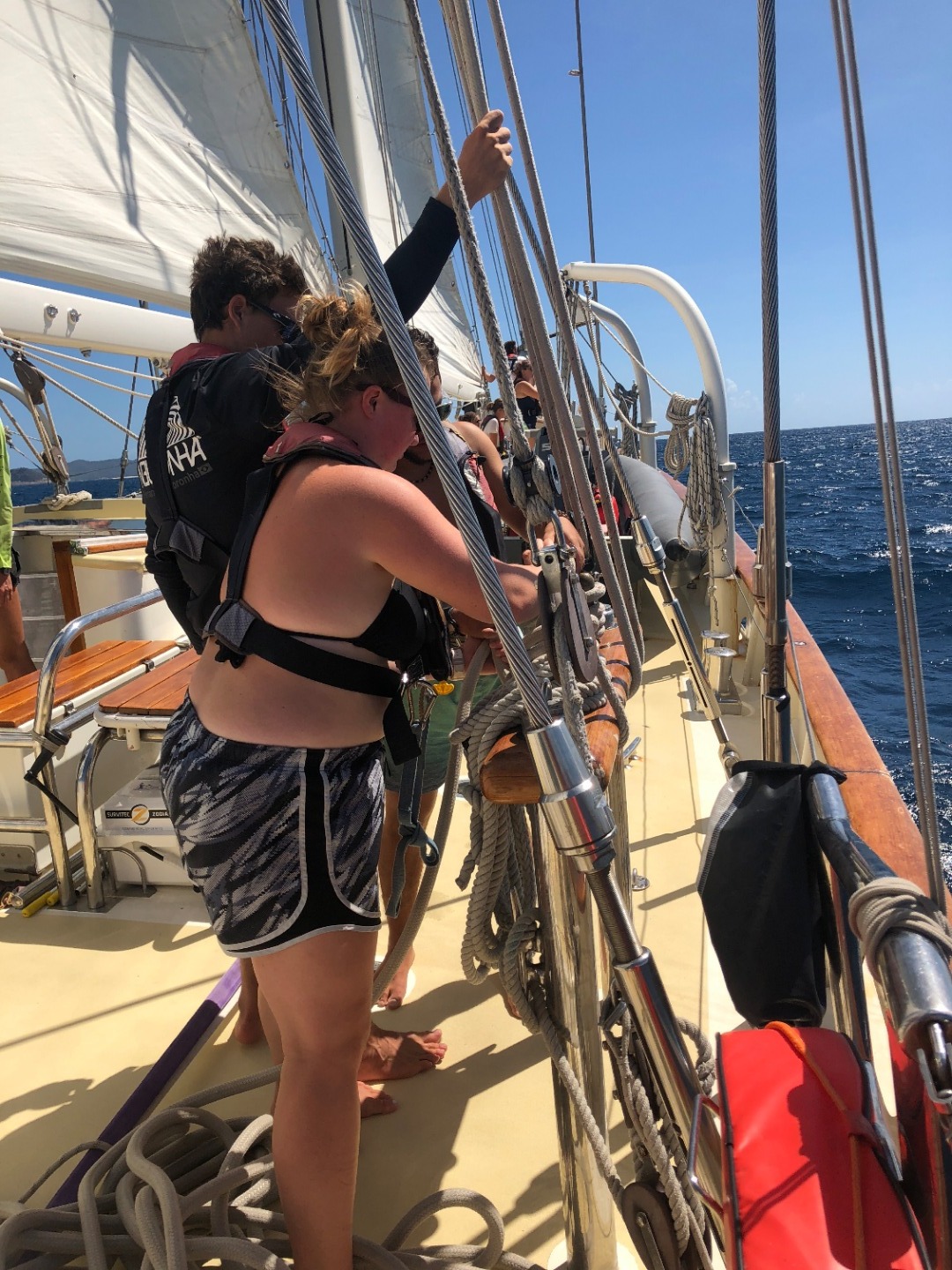 Today was the second of our student-run passages, this time led by skipper Robbie. The passage began with an early wake-up at 5 a.m. for the deck team. By six, the anchor was up, and the sails had started to get raised. The navigation team, led by Fiona, worked hard all last night and throughout the day to calculate our course and make sure we arrived at the right island. The engine team, led by Daniel, took care of all the machinery and made sure everything was on when we needed it. Throughout the day, we overcame challenges as a group and realized we knew more than we thought we did; with every action, our confidence grew in ourselves and each other. When we arrived in St. Lucia, everyone was breathless at the beautiful scenery of lush mountains, sandy beaches, and clear water down to the coral reefs below the boat. The day ended with a free swim beneath Petit Piton and time to explore the reefs, and a fun Marine Bio class that involved cake. We’re now going to bed, excited about scuba diving and exploring the island.
