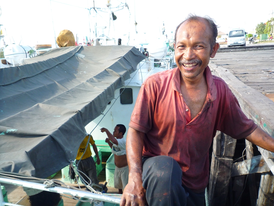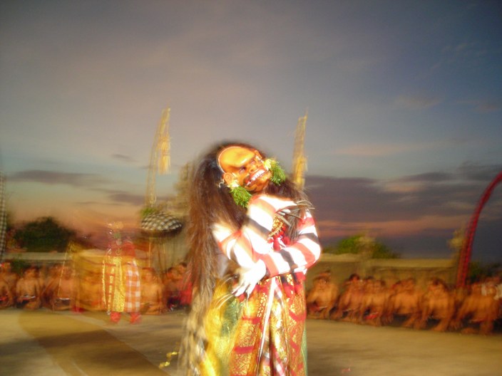 This one will be a long one, so for those of our readers who are in a rush, here are the cliff notes: (1) unreliable men disappeared with our passports, (2) a monkey stole Garrett’s glasses, (3) Brian was physically coerced by a man wearing a mask to dance in front of hundreds. A fairly standard Sea|mester day. For those of you not in a rush, here goes: All twenty-six of us sat under a baking sun on the hot deck of Argo, looking longingly at the shore we were still forbidden to explore. As soon as the tropical sun comes up in Bali, it is like an oven being switched on, especially on a day like today where the air is lifeless and still, not even the slightest hint of a zephyr. It was that much more painful because just at the end of the pier that we were docked on lay the marina restaurant that we could see with our own eyes, cold drinks and exotic foods served with a smile. Beyond that, we couldn’t see, but we were guessing that it had refrigerators full of cold drinks just waiting for the crew of Argo. Not to mention, there was a lot of Bali to explore, and we had too little time to do it, and here we were sitting and waiting. We were waiting for our group of perpetually late customs officials to return with the stack of our passports that they had disappeared with earlier in the day. Until they gave us the go-ahead, we were not allowed to set foot on land. They had told us that they would return around 1 p.m., but that just meant after lunch. Judging by when the officials returned, lunch ends at around 2:30 in Bali. We were finally cleared to wander out into this foreign new land at three in the afternoon. Four or five hours later than originally planned. The original plan had been to take care of chores and customs in time to walk off the dock and into a restaurant for a 12 o’clock lunch and then have the rest of the day to wander around on our own with eyes widened and jaws dropped. That plan walked right out the door with the customs officials and our passports. We were bummed, to say the least. Luckily, a new plan walked in when the customs officials brought back our passports. The translator that we had hired to help with the customs process suggested an excursion for us. We weren’t quite sure what it involved, but to the best of our understanding, it involved driving to a temple to see some sort of sundown ceremony or dance. We would have to leave the boat at five, so that would give us a little bit of time to fan out, guzzle cold drinks, change dollars to rupia, and poke our heads around the harbor neighborhood. It sure beats doing nothing at all. Once freed from the boat, Garrett and I wandered off down a side street in the harbor neighborhood. The street was lined with shops of all kinds; there was a diesel mechanic next to a used clothing store next to a pool hall and a general store. In front of the shops, there were scooters and bicycles lining the sidewalks. There were Balinese men lounging about in whatever shade could be found smoking clove cigarettes, the sweet smell of which is quite pleasing in contrast to regular cigarettes. In front of one shop, an impromptu barbecue was taking place over a grill made from cinderblocks and rusty metal scrap. The main course was fish. The marina we were staying in was near a working fishing dock. In other words, it was not a tourist zone. As we made our way along, it was clear that we were a bit of an oddity. Dozens of pairs of curious eyes watched our progress down the street. Shopkeepers got up from the TVs in the backs of their shops and walked out to the sidewalks to get a closer look. We were strange men walking through a strange land. At the end of the street that we had chosen lay the fishermen’s docks. Hundreds of fishing boats of all sizes lined the docks. Many of them were stacked up four or five deep, so to get the boat on the inside out to sea, four or five others would have to be moved first. As we walked along the dock, we realized that this was no Atlantic City boardwalk. The docks were made from a rough cut of heavy timber. They were uneven and rickety. We had to be looking down so as not to put our feet through the holes where planks had broken away or gone through. The place had its own sort of beauty to it. Everything was built for function but was still given aesthetic consideration. The boats were all painted bright colors and had ornate decorations in unexpected places. One boat had a balcony above the bridge. The safety railing was held up with intricately carved columns that made the boat seem that much more foreign and exotic. Garrett and I were still in a deep state of shock. This was the kind of stuff that you see on the National Geographic pages. You can look at the pictures and acknowledge that they are real and exist easily enough from the comfort of your living room chair. But actually, having the panorama spread in front of us as we dodged trucks loaded with hundred-pound tuna forces the senses and processing centers into overdrive whether or not you are ready for it. The foreign smells of a working Indonesian fishing dock wafted around us. It was equal parts diesel fumes, trash fires, fish guts, and more clove cigarettes. I exchanged a look with Garrett. We weren’t sure what we were getting ourselves into, but we weren’t about to turn around now. We walked down the dock, snapping pictures along the way. On one boat, one of the deckhands took a strong curiosity to us. He came up and, in broken English, asked us where we were from. We spoke with him for a while and then asked him to take his picture. He was quite happy to have his picture taken. Once the captain saw that there were visitors, he hopped up to a deck on a level with the dock and began smiling for the camera. The fishermen invited Garrett and me aboard their boat. They showed us the hold where they keep the tuna they catch until they can bring it to market. They showed us the cockpit, which was about the size of a closet in a 