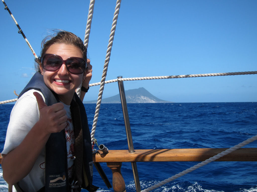 Most importantly, shipmates got their first experience of the rhythm of life on passage; boat checks are performed on the hour, watches rotate every three hours, and you try and get the best sleep that you can with the motion of the boat when you’re off watch. As we steadily made our way southeast, we raised Saba right around sunrise, an island that juts abruptly from the ocean, with verdant sides rising at steep angles to its 2,800 ft. peak. Soon after, we were able to see the islands of St. Eustatius and St. Christopher (St. Kitts), and around lunchtime, we were finally able to see the outline of Nevis’ volcanic cone on the horizon. We sailed on through the afternoon, arriving in the anchorage in time to get the sails down and the boat secured to a mooring for dinner. It’s really quite amazing to see how far 12 strangers with no experience sailing can come in just ten days aboard.
