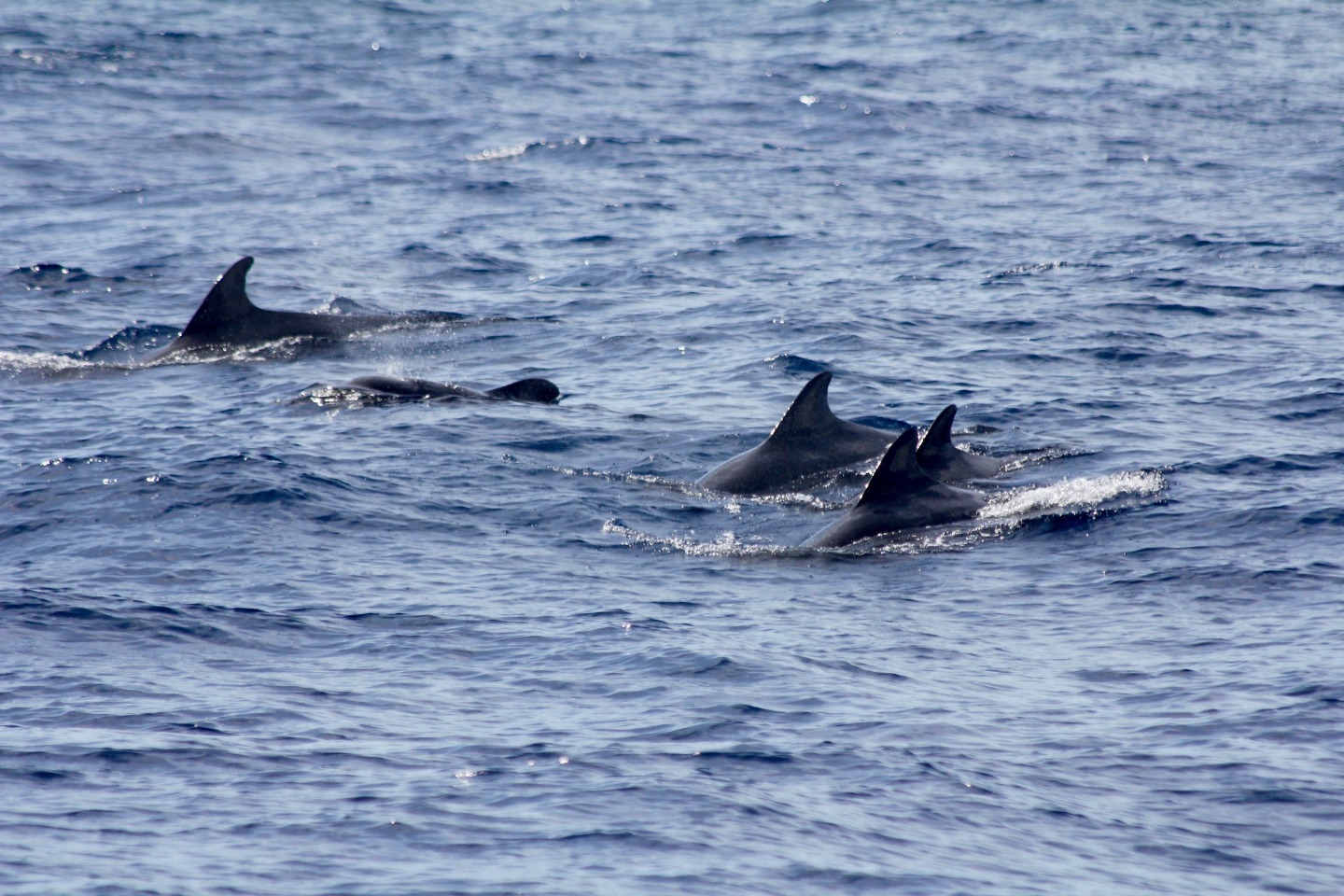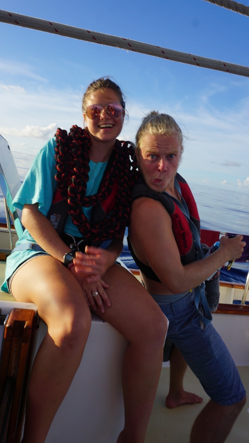 Watch team one started the morning with the 8-12 watch, admiring the calm ocean and sunny weather. Because we are beginning to near Australia, the crew has begun to tidy up Argo during the morning watch. Therefore, half of our watch team proceeded as normal, manning the boat and making sure everything was running smoothly. The other half spent time cleaning and organizing various areas on deck and down below. To everyone’s delight, preceding lunch, a large pod of short-finned pilot whales was spotted off the port bow! PFDs were donned, and those napping in their bunks were woken from their slumber as the crew hurried up onto the deck to watch the whales swim towards the boat, in awe as they continued to swim alongside Argo for another twenty minutes or so before continuing. Needless to say, the long-awaited whale sighting was met with oohs, aahs, and high levels of excitement, as well as crossed fingers hoping it was not the last time we would see whales on this trip. The crew then gathered in the cockpit to enjoy delicious pasta, lettuce-free salad, grapefruit, and an amazing coconut chocolate chip cookie lunch prepared by the chefs of the day. The afternoon consisted of marine biology, followed by navigation practice during seamanship, preparing for the Navmaster exam coming up in the next couple of weeks. Deck showers in the last rays of the daylight and a hearty dinner accompanied by a beautiful sunset opposite a moonrise were the cherry on top of another day at sea. Though it has been a fun and relatively calm passage thus far, the anticipation of arriving in Australia is building as we only have about 170 nautical miles left; it won’t be long until someone on bow watch gets to announce “land ho!”.