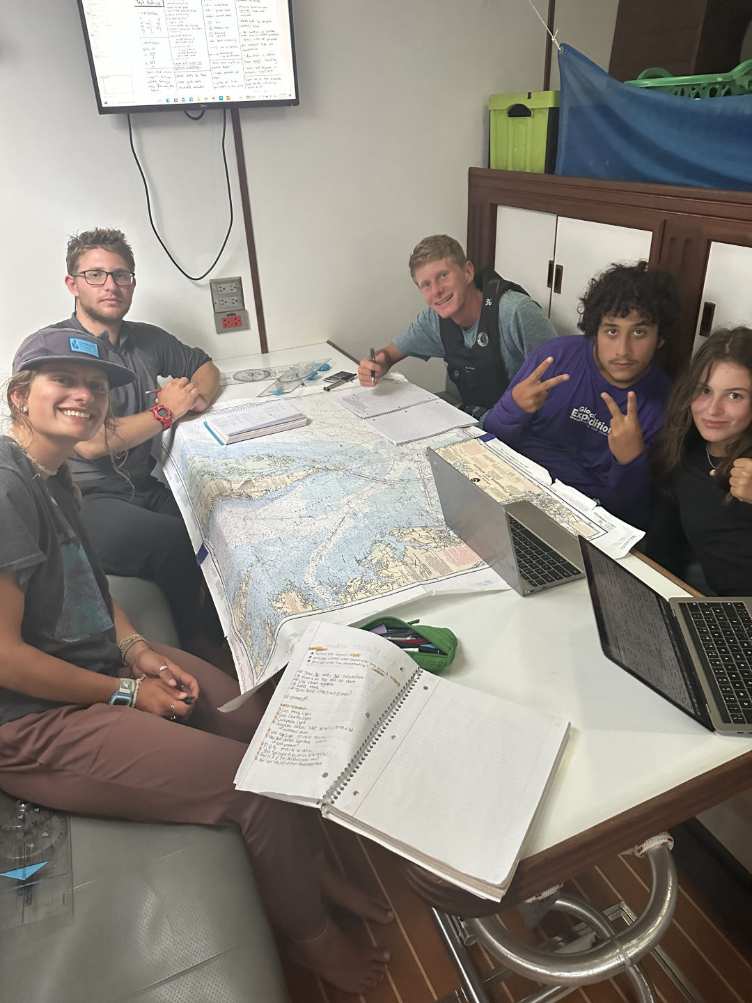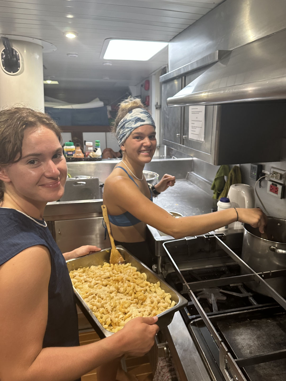 After watch team 1 went to bed, watch team 2 took over the boat watch before the entire crew would wake up for the day. In the first part of this watch, we members of watch team 2 perfected our time king dance which you’ll hear about later in the blog. In the second half of the watch, the watch team had to split up, unfortunately. Our head chef of the day, Cate, went with one of her sous chefs, Drew, to wake up the other sous chef, Lily. Lunch had to be made. As two members of the watch team headed out, Santana also was forced to abstain from watching the boat to focus on his leadership presentation with Eddie, who had just woken up. They had to present to the rest of the crew later that day how change relates to leadership. Their other partner was Drew. This just left Maya, Phoebe, Claire, and I to watch the ship until it was time for the rest of the crew to awaken.