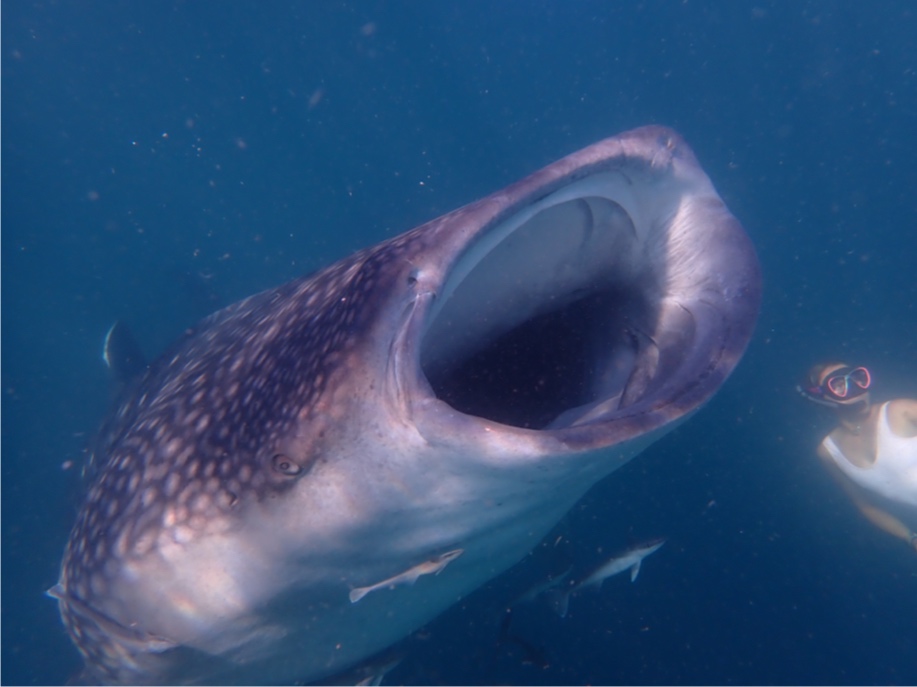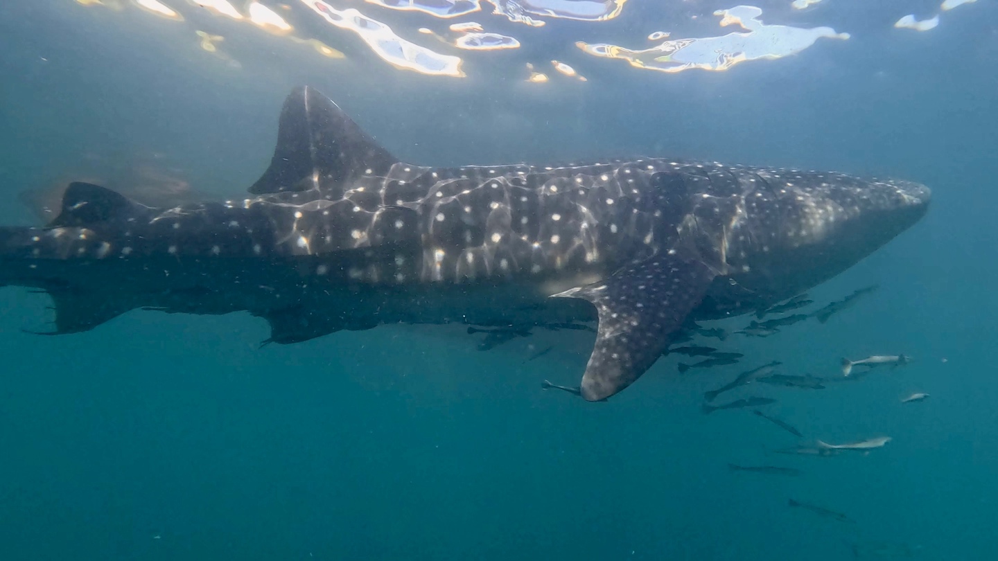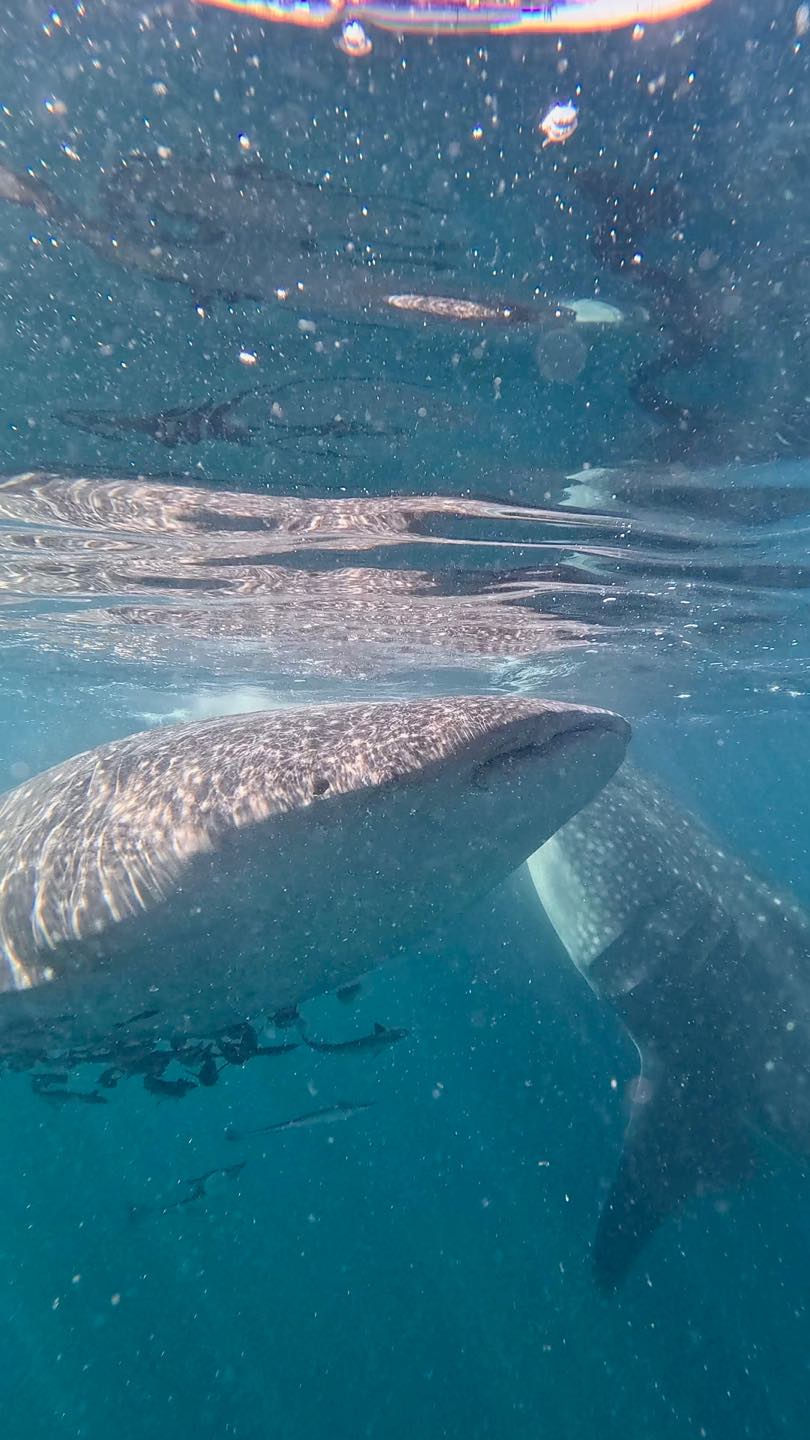 This morning, we woke up bright and early at 5 am to swim with whale sharks!!! Steph messaged our bestie Roberto, and he checked out the different spots we could go to. We picked up anchor a few hours later and moved Argo to the location he told us. We all loaded up our gear and took the dinghies to one of the squid fisherman’s boats. They look really interesting and have wide pontoon-looking things on either side. When we pulled up, there were already two whale sharks in the water, and another boat of tourists was swimming with them. The fishermen were dumping buckets of krill and tiny fish overboard, so the water was full of food for them to eat. They were so incredible to swim with, and they were so huge but derpy looking with their wide mouth and tiny eyes on the side of their head. It was a little hectic at first because the other people were swimming all over them and only cared about taking selfies with them, but once they left, it was more enjoyable because we knew how to keep our distance and appreciate them without touching them. The two whale sharks were about 12-15 feet long and so beautiful with their spotted backs. It was cool to see them feed because their mouths open so wide, and they just suck a bunch of water down. We swam with the two whale sharks for a little over an hour, and then we loaded up and went back to Argo. We got everything ready to go and we got underway to Bali! We ate pancakes for breakfast (literally cake in a pan), and I was bow watched for a couple of hours. There were so many fish traps and floating water bottles that I was radioing the cockpit every few minutes. A pod of dolphins rode the bow for a while, which was amazing! They were so small and cute and tiny, and the water was so smooth and glassy that it looked like they were flying. After breakfast, the 40A people had a marine bio test while I was on watch. We had a later lunch at around 1, which was rice and vegetables with garlic bread. After lunch, I took a much-needed nap, but while I was asleep, Anabelle did her watch team leader duties and led everyone in, putting the main staysail and forward staysail up all by herself! (She wanted me to say that) When I woke up from my nap it was time for dinner, so everyone gathered in the cockpit and had a nice dinner, lentils and pasta. We had a squeeze with a beautiful sunset. I have watch from 8-12 tonight, and we are going strong on our student led passage, all the leaders are doing great. We are most likely going to arrive at our final destination at around 3 pm tomorrow. Miss you, Mom and Dad!