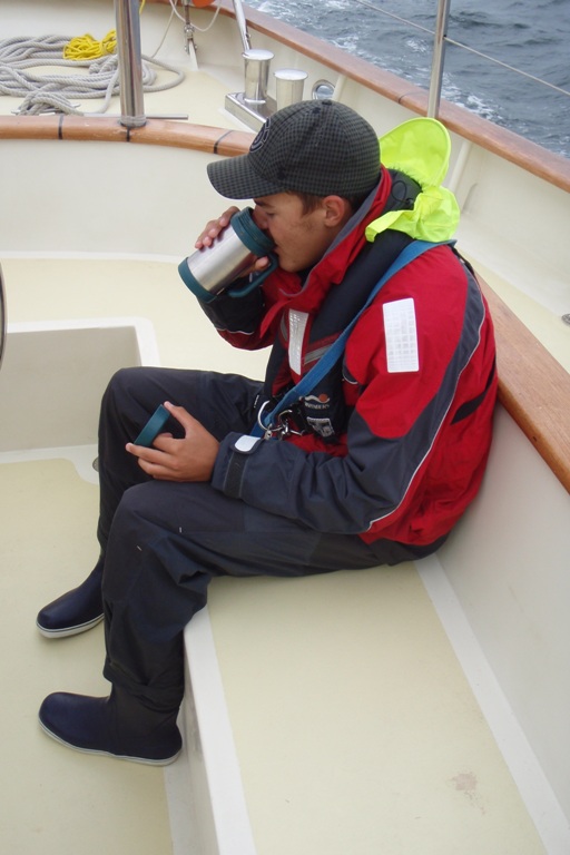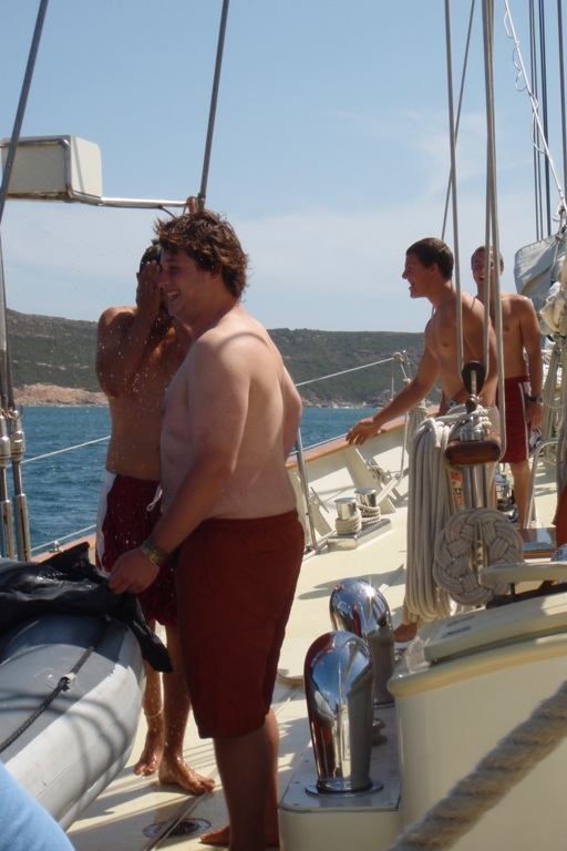 Today was actually a pretty eventful day. It started off like any other day under passage, working our way through night watch until it came to my watch team, group 3. It had been decided that we were to anchor in Cape Seal due to the approaching inclement weather. Right before our arrival, there was a spotting of a humpback whale and its offspring, occasionally leaping out of the water and generally splashing around a bit. We rolled in at about eight, welcomed by seals hopping about through the water. As we arrived, my group did a little boat appreciating and then briefly passed out for a good while. Unfortunately, I had to finish my PowerPoint presentation on OCB research. I stayed up, and the boat quickly became very quiet. Quietly working by myself, the boat slowly rolling around, I realize how much I’ve gotten used to from being on this trip. I would have never thought I would ever be constructing a PowerPoint in a sailing yacht in Southern African waters. Anyway, we didn’t get a chance to get ashore and check out the local scene, seeing as we were just anchoring for the night to avoid the low-pressure system chugging right toward us. The rest of the day was pretty normal, with lunch, class, dinner, and then anchor watches through the night.