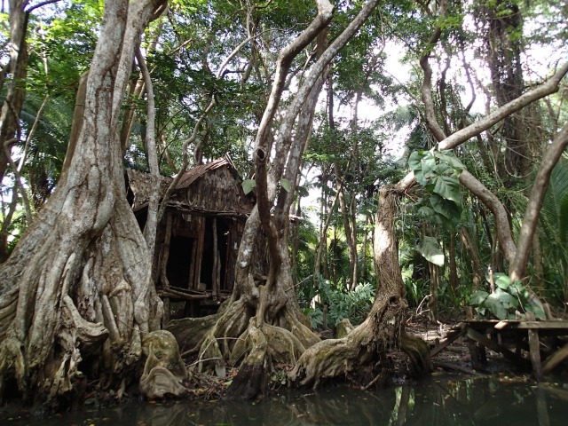 It was another big and exciting day for the crew of Ocean Star, filled with whales, pirates, and exams. Students started their day out with a midterm exam on marine biology. After that, Ocean Star motored to Portsmouth, Dominica. After learning about sperm whales during our guest lecture by Shane Gero from the Dominica Sperm Whale Project, we were all on the lookout for these gentle giants during our passage. Everyone became very excited when a sperm whale surfaced the water, exhaling and producing a large “blow” of water above its dorsal fin. We watched it for about five minutes before it dove below the surface. After arriving in Portsmouth, students went on a tour of the Indian River, where they did an Oceanography lab, testing the salinity of the estuary as we were paddled upriver in a small boat. Students took a break at the Ticking Croc Tavern after their lab and enjoyed fresh herbal tea and grapefruit juice. The Indian River is also where the movie Pirates of The Caribbean II: Dead Man’s Chest was filmed, in which Captain Jack Sparrow must ask the sea witch Calypso for help with defeating the dreaded and frightening Davy Jones. The day ended with a class on estuaries and a review of the lab that was done earlier that day. Tomorrow Ocean Star sets sail for Les Saints, with more adventures waiting to be discovered.