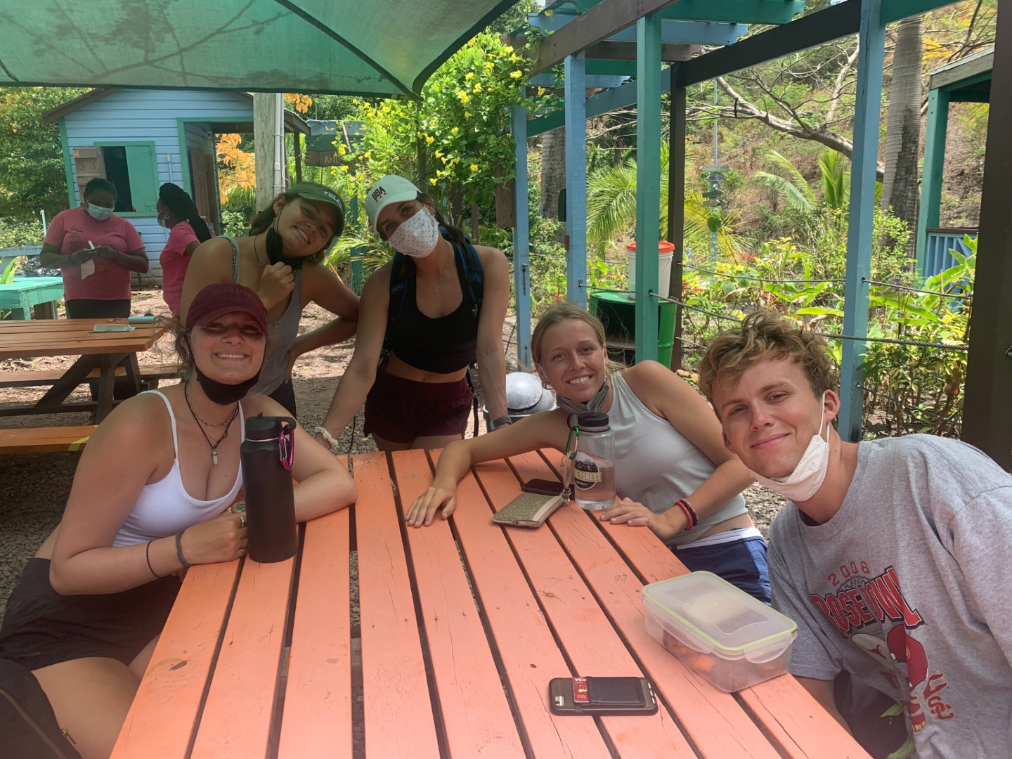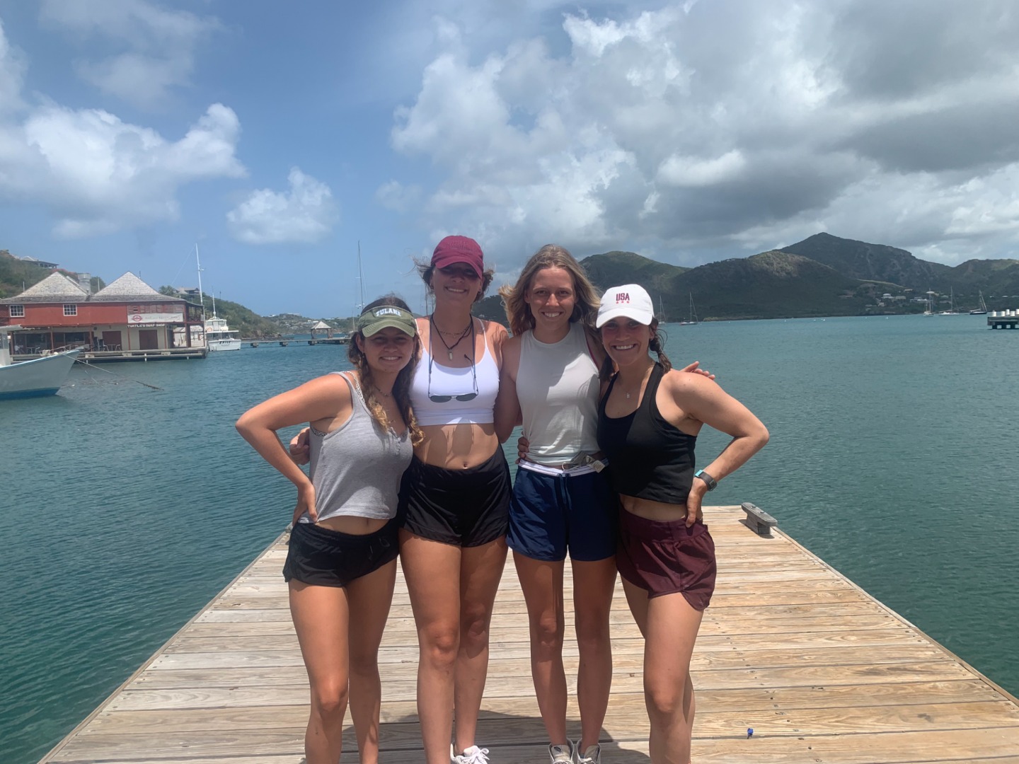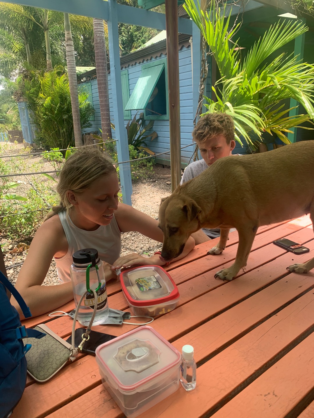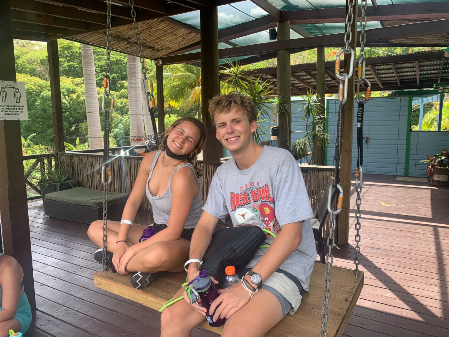After going through each scenario, everyone finally got to shore to check out the local coffee shops before our taxi pick-up to the zip-line and high ropes course. When we arrived, we were greeted by the friendly dog, Cashew, who only wanted scraps of food from our packed lunches. Cashew reminded me of my own dog, Monroe, who has become quite famous on board for the numerous times that I mention her or try to show someone a photo of her. (Don’t worry, I included a photo of her begging for tummy rubs while holding a stuffed shark toy). Once we finished lunch, we all got geared up with a harness, helmet, and gloves. We looked quite professional with all our gear on. We then zoomed through the zip-lines and even got some killer photos of Maddie and Ellery in action. The high ropes course proved to be a bit more of a challenge, especially when Kelsey was shaking the wire I was trying to walk across. After struggling through the course, we finally all made it to the end, where we chilled on a swinging platform or took the opportunity to grab some sweet selfies.