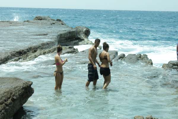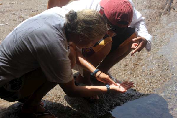 After waking up to see the sun on a day originally fore-casted with rain and thunder, we all had a yummy cereal breakfast and got ready for MTE class. In MTE class, we learned about speed, direction, and time and how to measure each in nautical terms. We then got dressed and ready to go on an exciting hike for SCIENCE! We got dropped off at a nearby beach and hiked to the peak of the cliffs overlooking the ocean on the other side of the harbor. The hike continued down the other side of the cliffs, down to some inter-tidal pools. We spent our time at the pools exploring, taking pictures of fish, crabs, and other marine life, as well as splashing around and having fun. Laurie talked about the necessary adaptations the different marine creatures needed to survive in the area and showed us an example of a tiny slug-looking animal. It then came time to head back, so we all walked back to the beach and made a sandcastle, swam, and sunbathed while waiting for the dinghies to pick us up. After a quick change of clothing and rinse, we all headed into town to eat lunch. Paige and Haley found a nice caf with internet to eat lunch while the rest of us found a local restaurant where we feasted on roti, pumpkin soup, and burgers. After lunch, we picked up our laundry, had some internet time, and explored the nearby British fort. Rescue divers had a class that afternoon, and everyone else relaxed while waiting to take showers and have dinner. Dinner was delicious chili and rice, and following dinner, we will have an exciting OCE class and then play the illustrious game of PIRATES!!!!