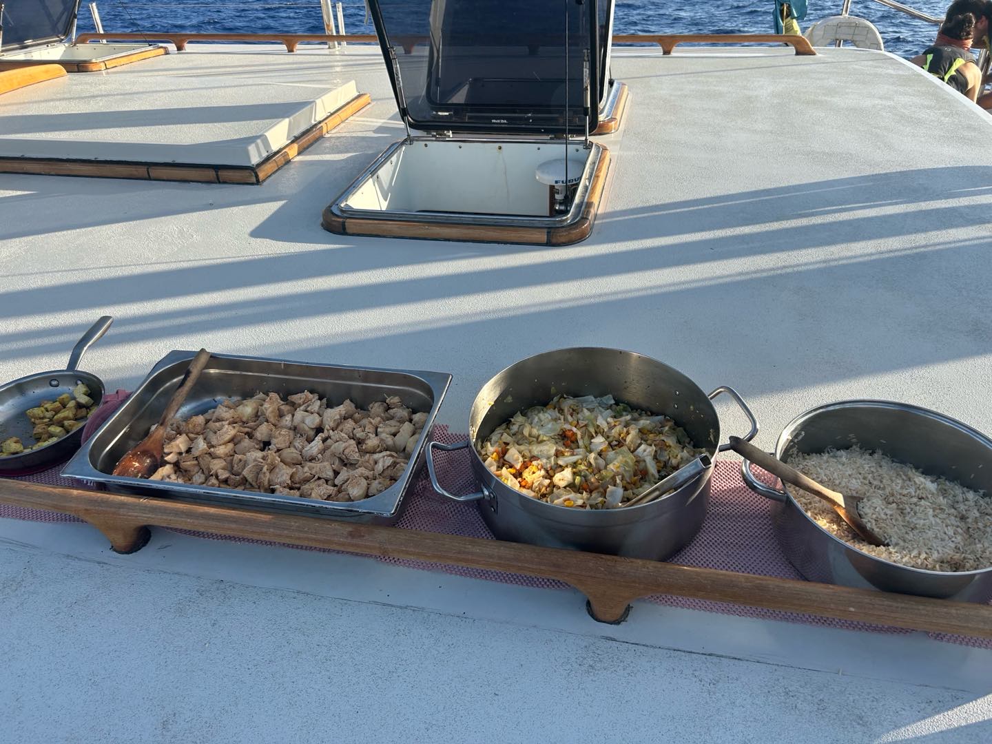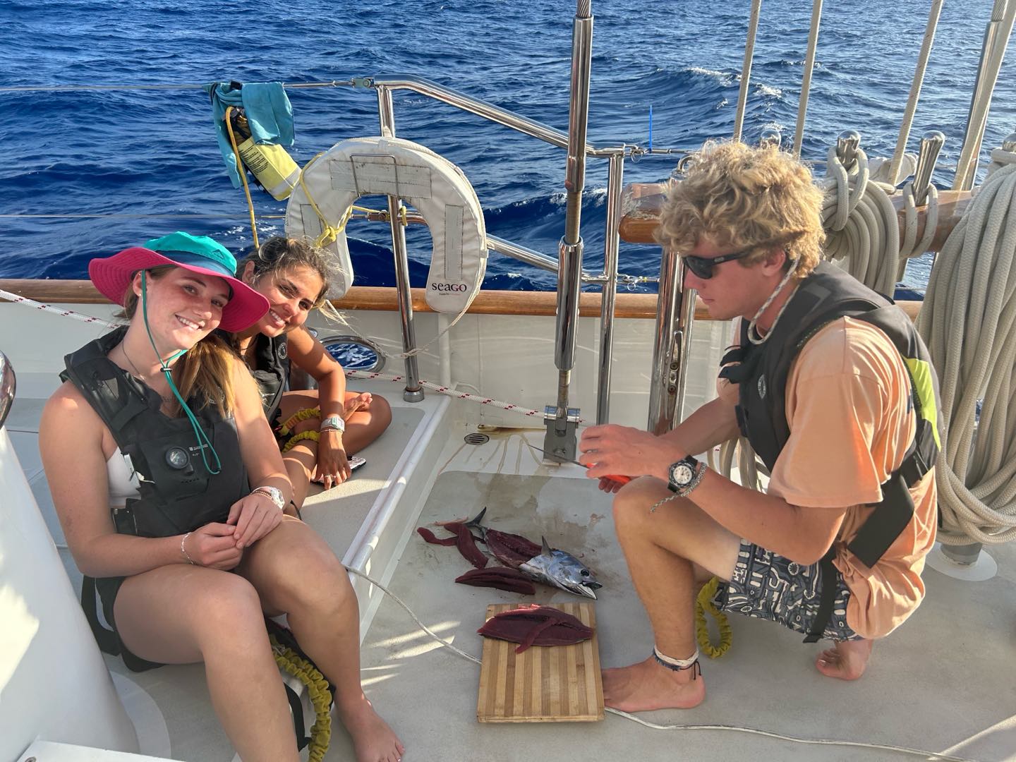 Lunch time rolled around with some delicious chicken, rice, and cauliflower bowls made by Grant and Perry. After food we had our classes, marine biology was just a short lecture about the deep sea and all the funky animals down there, and seamanship was really fun because were doing charting right now. Shoutout Reed, we did a great job with all our coordinates, very proud.