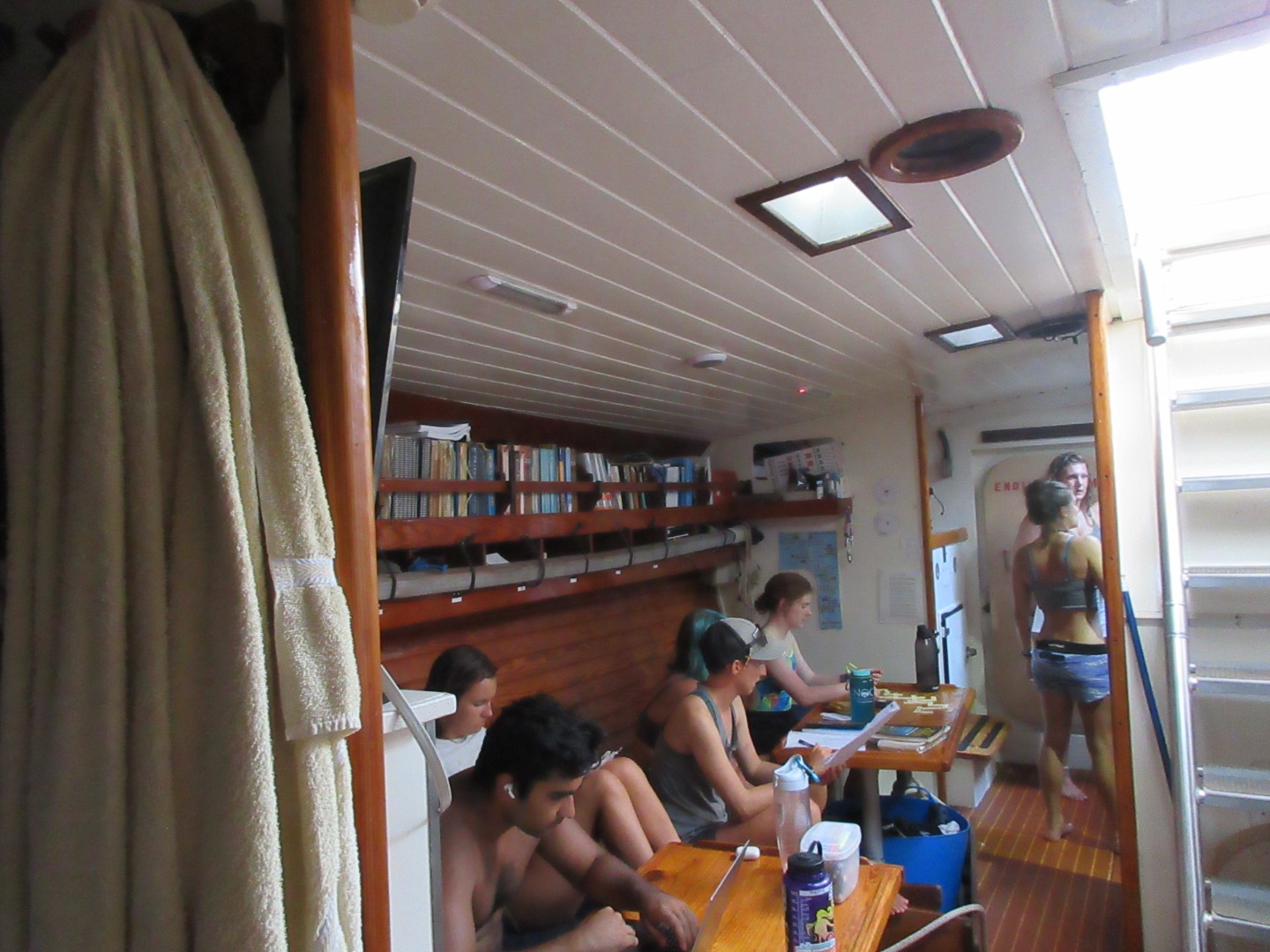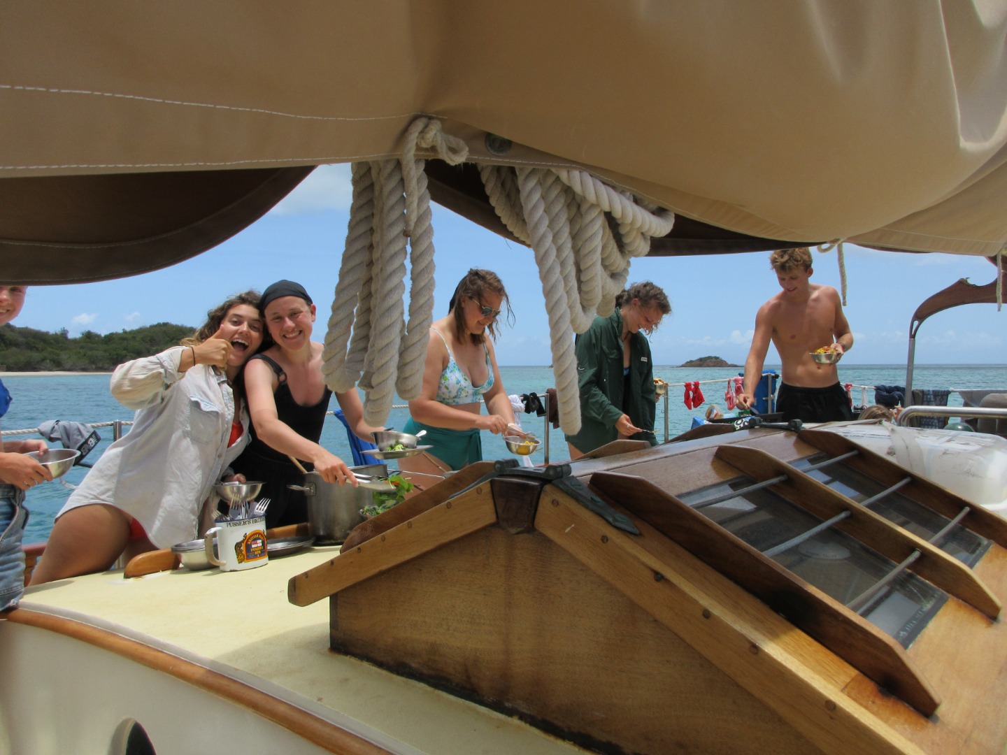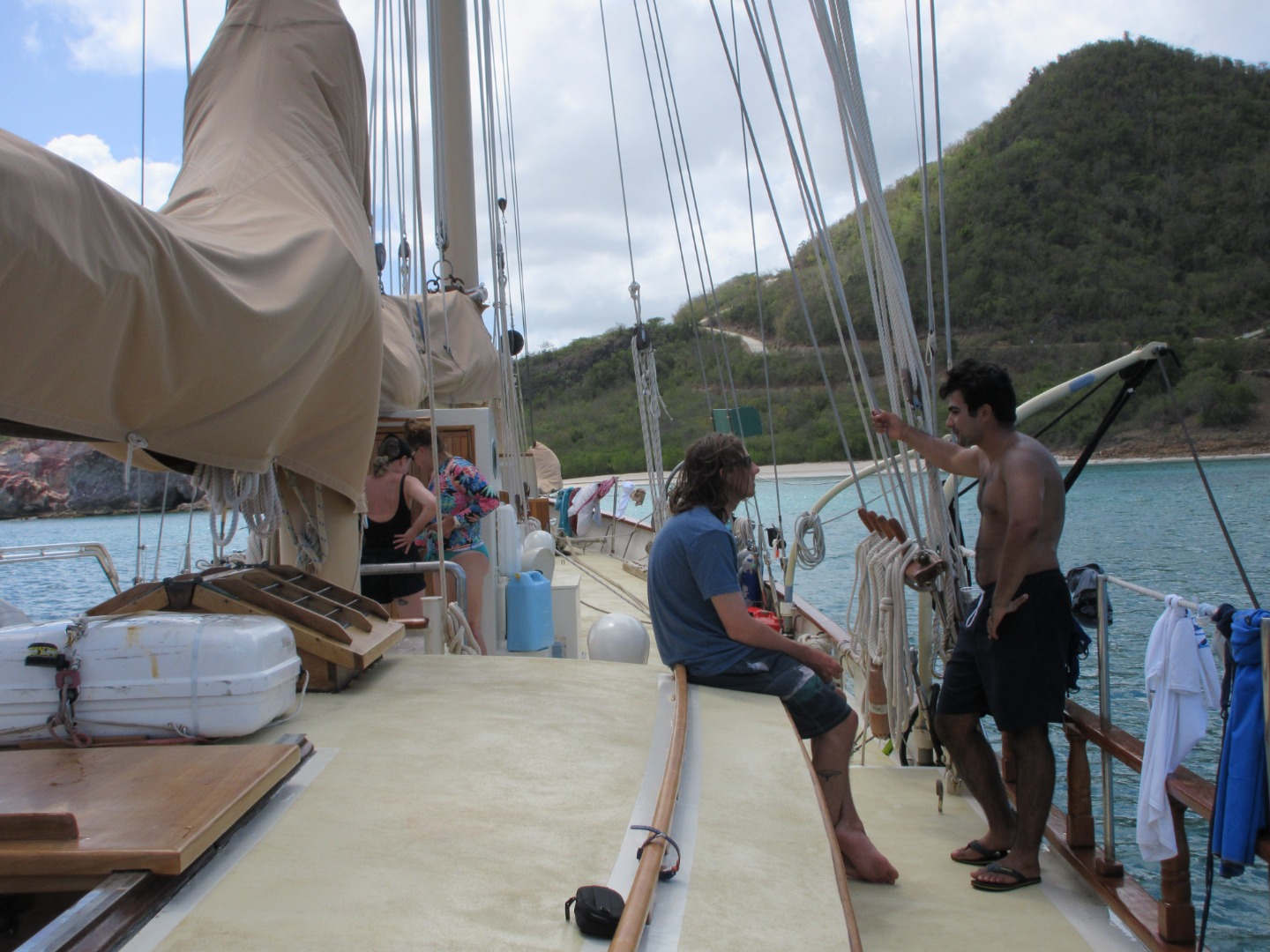 The crew was in high spirits beginning this morning at the news we could go to Saba or Barbuda for scuba diving. Chefs Caroline, Jay, and Aurora made an oatmeal bar with eggs for breakfast, veggie bowls for lunch, and lentil soup from scratch for dinner. All were restaurant quality. After breakfast, we showed how much we love our home for these 20 days, Ocean Star, with a little boat appreciation (BA). It sounded like we might be singing songs about the boat, but instead, we cleaned the boat – true boat appreciation. Following BA, we learned about sailing again. Now we actually understand what we were doing when we sailed on day 6. Hopefully, we’ll remember it all for tomorrow’s sail.
