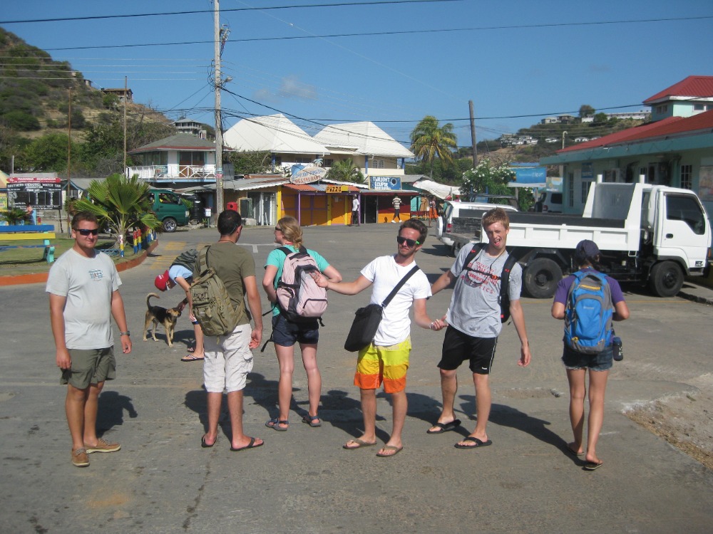 Today started with an OCE (Oceanography) class taught by Emma to educate us about H20 on a chemical level (we already know down here it’s beautiful and blue as can be). After morning class, we had the morning free on Union Island. We all explored the island, which included looking at sharks, local food stands, and even an up-close view of planes taking off from the airport. Some of us noticed packaged candy patties at one of the grocery stores and discovered a pleasant surprise: a shredded coconut molasses treat! After our morning at Union Island, we pulled up our sails (in record time) and set off for Tobago Cays. It was a picturesque sail through the afternoon to Tobago Cays: just us, the sun, the sea, and great company. As we approached our destination, we sailed onto anchor for the first time, which meant we had to be ready to get the sails down fast. Everyone had a job, and we were successful, now safely anchored between the islands of the Tobago Cays. It was rewarding to see us all work well as a team to accomplish our goal. Especially when we looked around at our new anchorage to find the stunning scenery, it’s no wonder they filmed parts of Pirates of the Caribbean here! Before dinner, all of us students took to the closest beach for some (mostly) friendly water games. Although some of our competitive sides came out, it was still all fun and games after our rewarding afternoon sail!