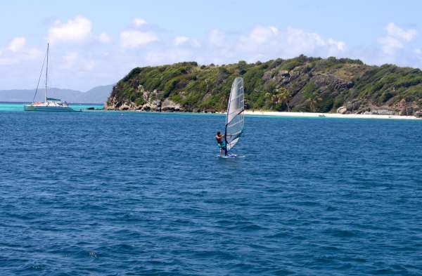 Our second full day in the Tobago Cays was jam-packed with classes but also left ample time for studying, relaxing, and water sports. The day began with a classic breakfast of cereal and yogurt, followed by Oceanography, where the students handed in their first take-home quiz. The class covered geologic oceanography, which studies the make-up of the earth, along with the topography of the ocean floor. After OCE, students were encouraged to learn windsurfing. Many students claimed that keeping their balance was the hardest part, but with fair wind and calm seas, many were able to sustain forward momentum for a good amount of time. Lunch came early, around 11:30, and featured delicious grilled cheese sandwiches. Next up was a Maritime Education course where we learned the procedure for retrieving a Man Over Board and also the ways in which you dock a vessel, either side-on or Mediterranean style (stern to dock). A siesta hour followed, and then it was study time, which was much needed. Many students felt that the allotted study time allowed them to catch up on homework or sleep, which, with our amazing schedule, can sometimes be hard to come by. The day finished with everyone gathering on the stern to watch the movie White Squall, directed by Ridley Scott, in our ship’s movie theater (projector and white sheet up in the rig). It’s about a group of students living on a school ship sailing halfway around the world! Sound familiar?