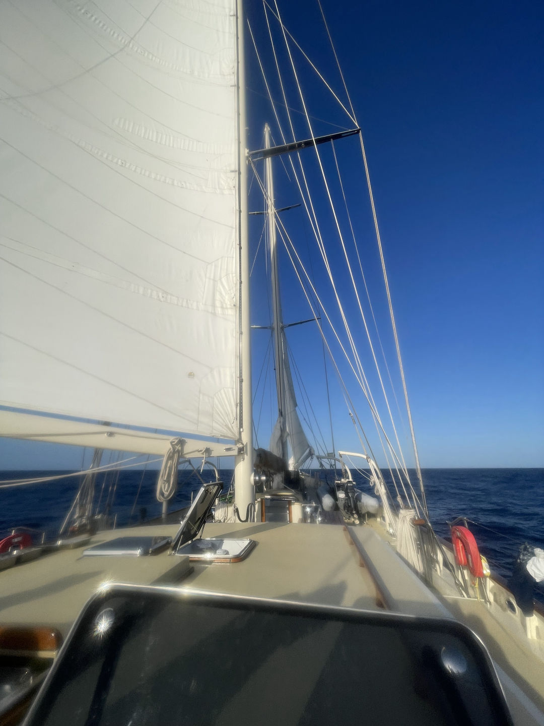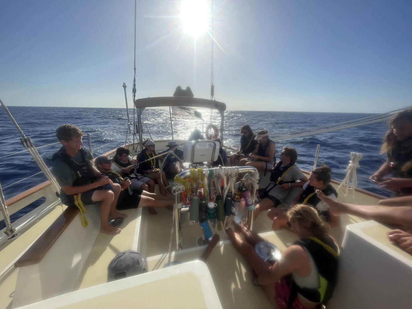 If anyone was ever wondering, the 12 am-4 am is the best watch. The stars, the moon, the bioluminescence, the weird 2:30 am talks-it is a blast! Last night was no different. Watch team 3 took over at 12am and celebrated the start of Maria Fe’s birthday by wishing on shooting stars before she went to bed. We then started our attempt at a spooky watch, which really just turned into storytelling and boat-watching for the first couple of hours. Around 2 am, I sadly had to pull Calum out of his dreams to crush his dream of keeping up all of the sails through the night-they were just not happy. As a result, in the last hour and half of our watch, we dropped a couple of sails, trimmed the rest, and got back on a course that was head into the wind, all under the moonlight. All in all, your favorite primary sail handler watch team (our jobs during emergencies) had a grand ole time and were very ready for bed at 4 am-but not before having a snack of peanut butter cookies made by Santana.