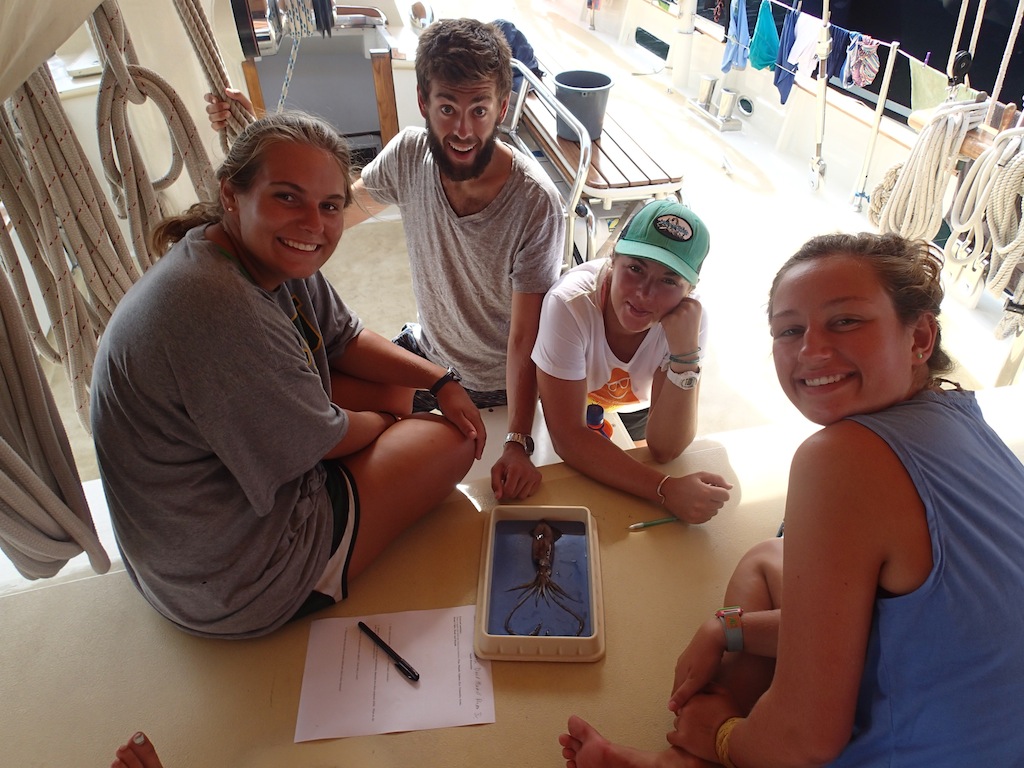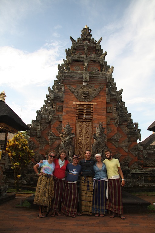 Because it lived in Bali, hahahahaha, no, really, a chicken almost got run over trying to cross the road today. Once upon a time, there was a boat named Argo, and it was anchored in Bali. And on the third day, there was excitement. It all started as a normal day. We woke at 7 for our usual 7:30 breakfast. The deckies shammied and put up the tarps while the gophers gophed, but then all hell broke loose when the cups made a run for it by jumping overboard. Luckily, due to Leah’s valiant efforts and the help of the dinghy, all the cups were safely returned to their cupboard, and the order was returned. Little did we know what would later be called the cup incident was a sneak preview of the excitement that lay ahead. After breakfast, there was class – today was OCB or, for all you landlubbers, Marine Biology. We just finished learning about animals in the phylum Mollusca, and today, we got to do a squid dissection to check them out up close. It was off to town with the tears for our lost comrades. The squids are still in our eyes. Although we were saddened, we knew our squid friends would want us to enjoy the day in their memory and the fun we had. One lucky group, Zoe, Sean, Sam, Hannah, DJ, and Annie, was about to have their world turned upside down. We knew little about the land of Ubud. Some of the travelers were scared. There were rumors it was the land of Giants. The cab driver, fearless as he was, quickly quelled these rumors. The roads were windy and packed; it was a sea of cars. Tis no matter. The cab driver weaved his way through like a thread through a needle. Not wanting us to miss any of the action, the cab driver pulled up to a quiet little shop. Outside, the workers wove the most beautiful patterns into Batik cloth. The travelers were mesmerized. It was like nothing they had seen before. The travelers were overcome with greed and had to have some, so they bought some fabric from the nice store workers and left on their merry way. It was back into the cab among the sea of cars. The travelers started to drift off into a wonderful sleep as the cab meandered its way along the winding, twisting Bali roads. Suddenly, the cab stopped.